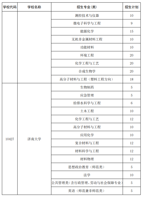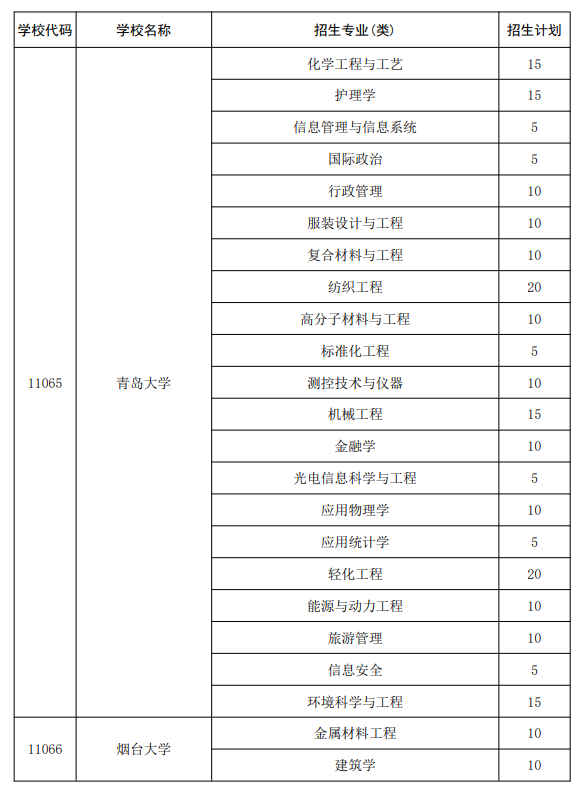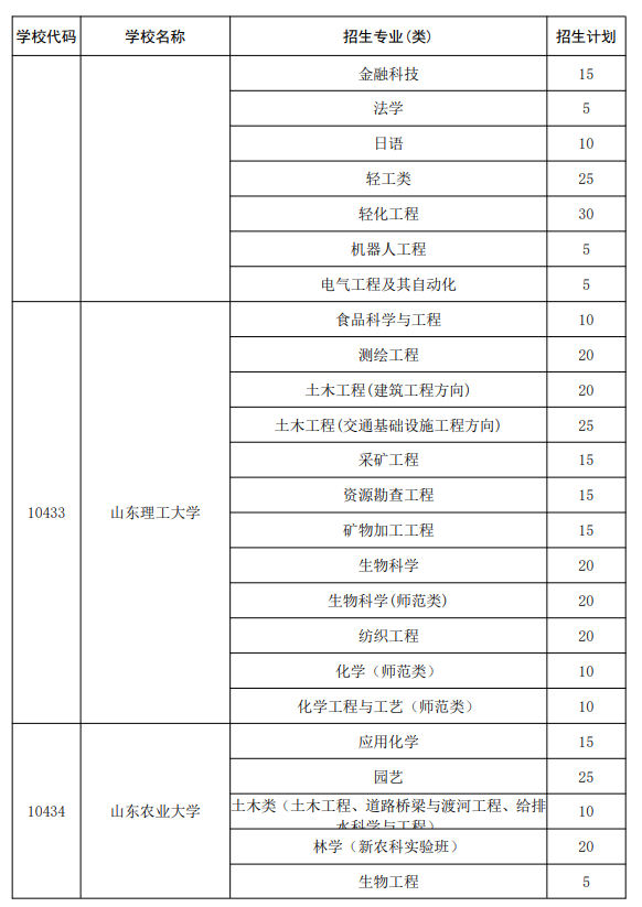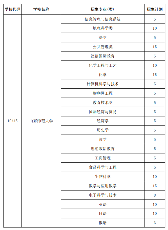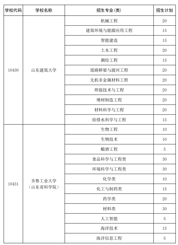 二、山东地方专项计划大学及专业名单