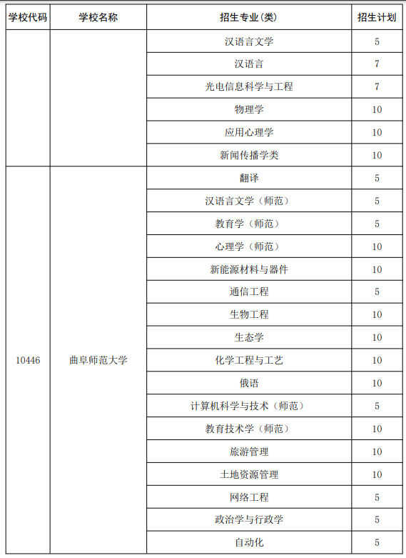 9、曲阜师范大学:招生计划180人