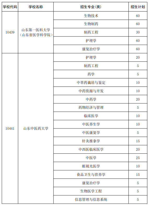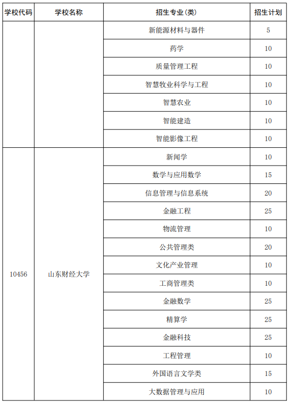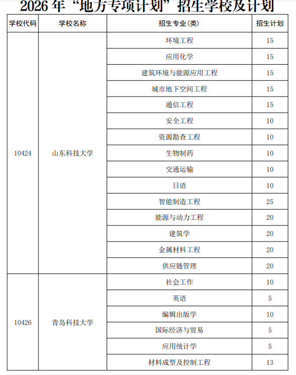 2026年山东地方专项大学及专业名单完整版如下表所示(含招生计划):