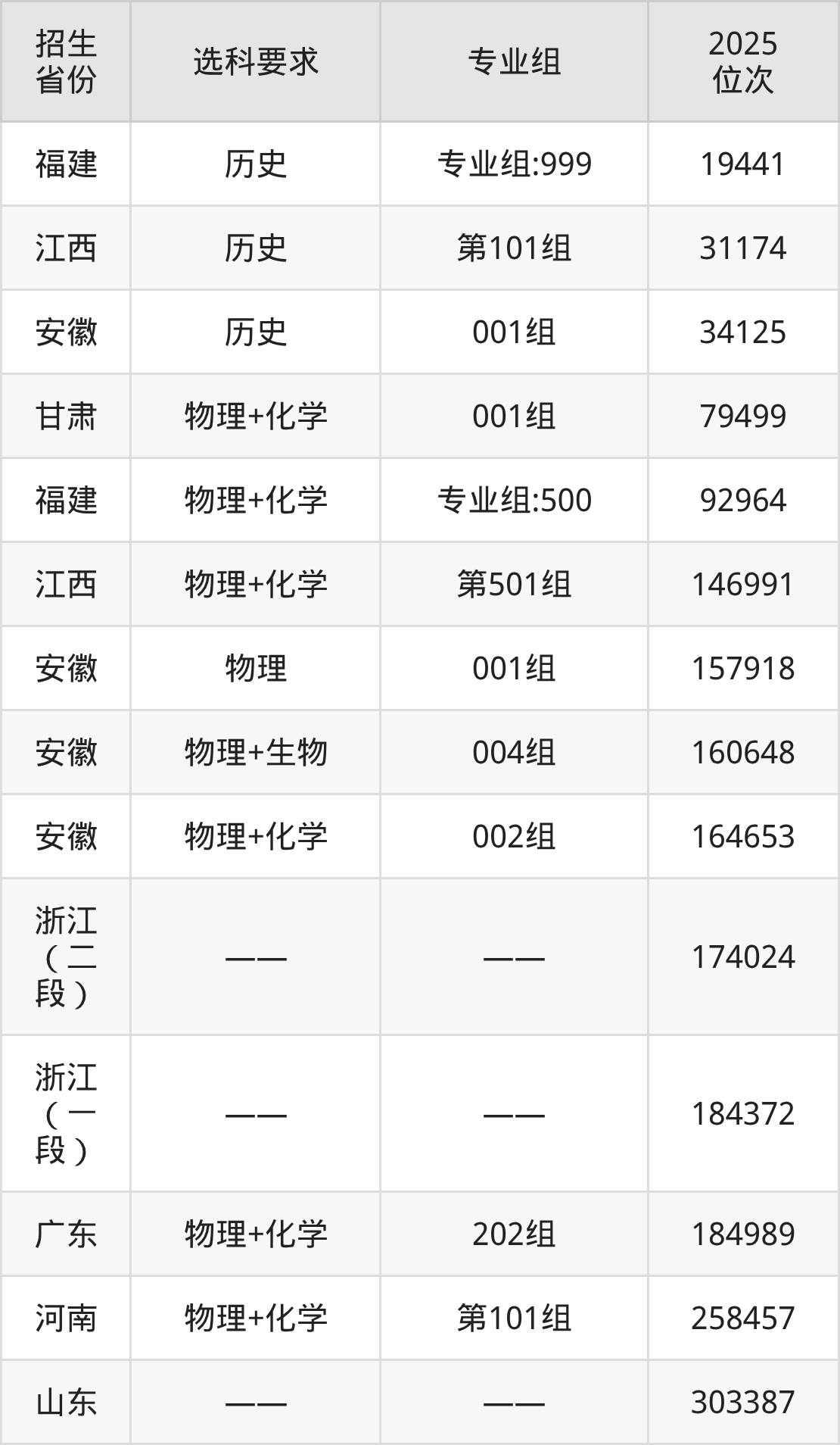 阜阳理工学院2025年在全国各省的位次差异较大,最高位次是19441位(福建历史类)、最低位次是303387位(山东)。各省具体位次请看下图:
