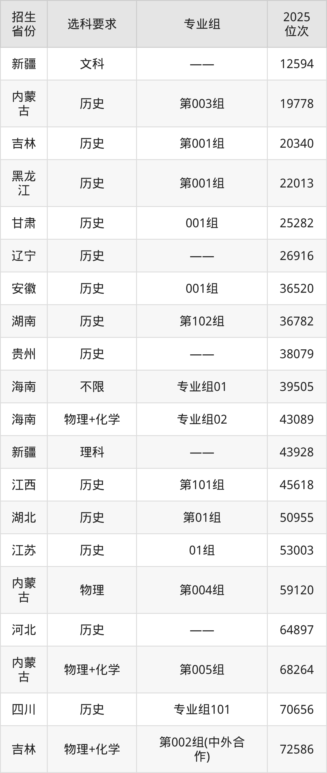 广州工商学院2025年在全国各省的位次差异较大,最高位次是12594位(新疆文科)、最低位次是376625位(广东物理类)。各省具体位次请看下图: