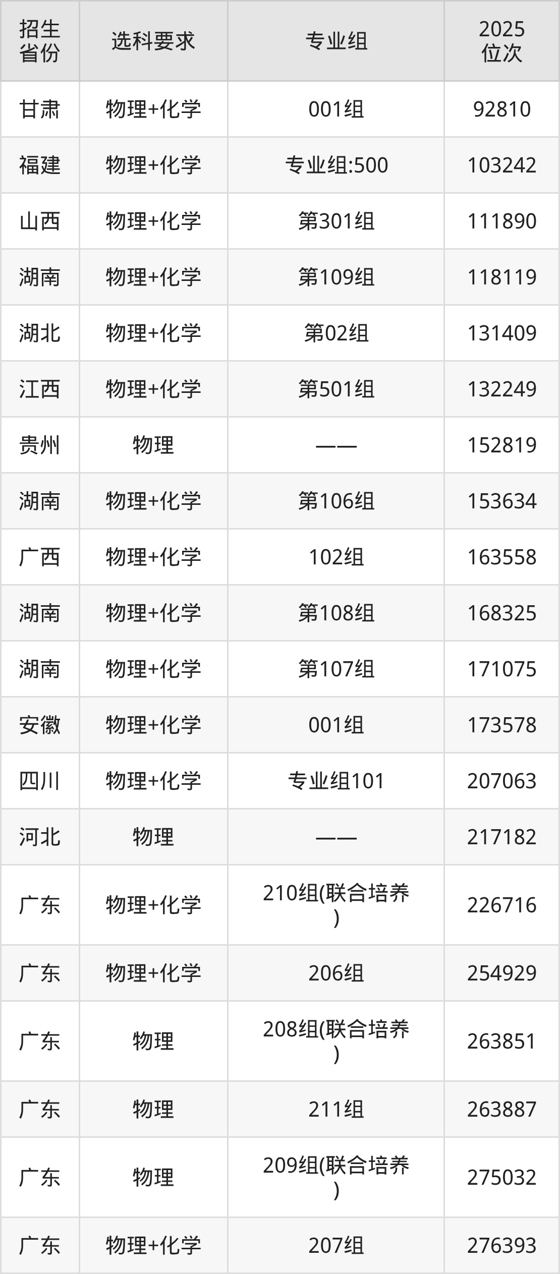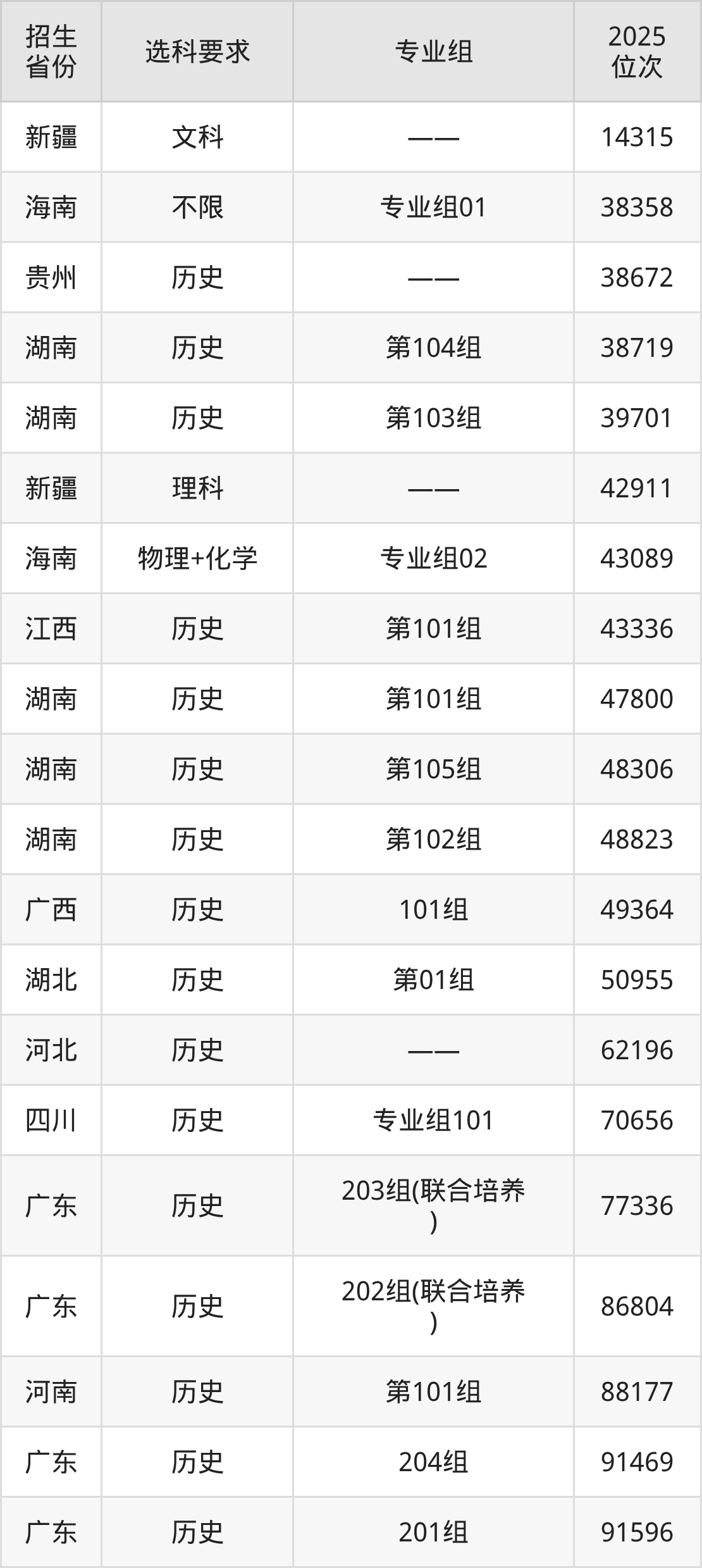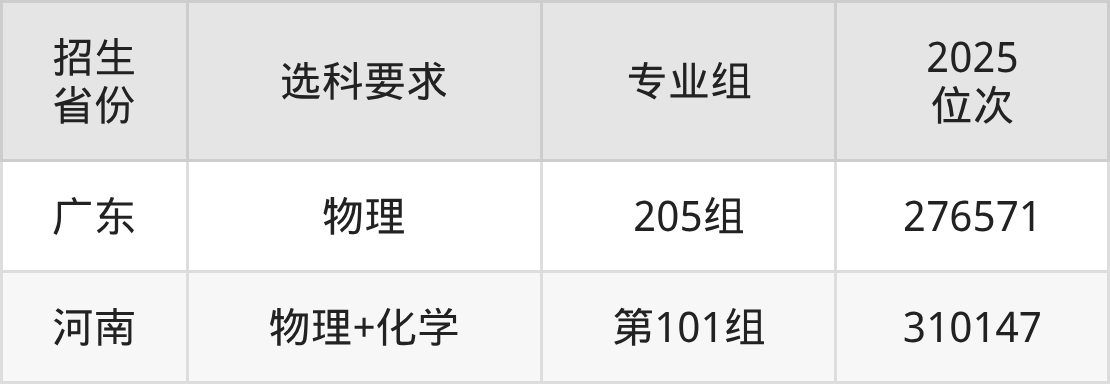 广东科技学院2025年在全国各省的位次差异较大,最高位次是14315位(新疆文科)、最低位次是310147位(河南物理类)。各省具体位次请看下图: