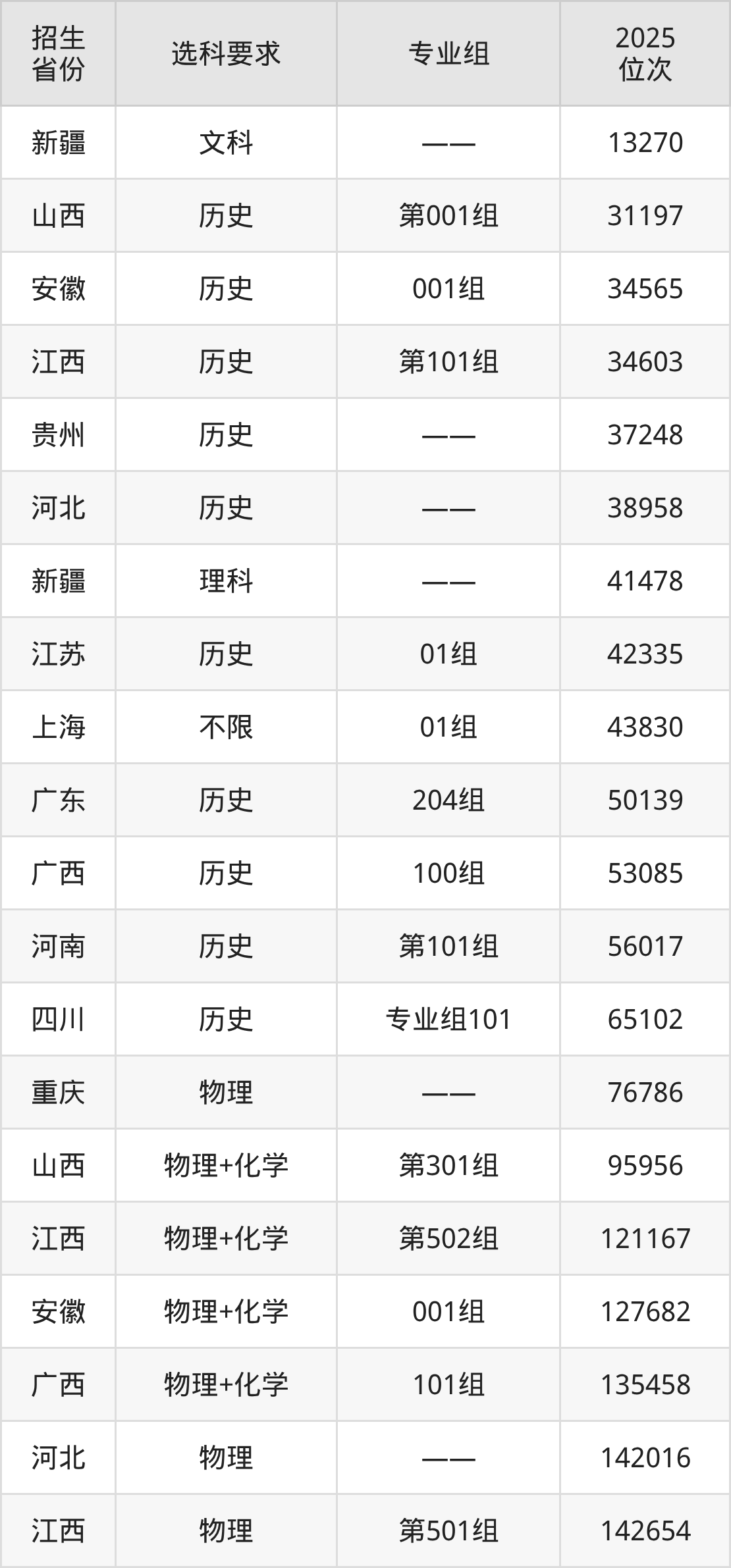 苏州大学应用技术学院2025年在全国各省的位次差异较大,最高位次是13270位(新疆文科)、最低位次是207063位(四川物理类)。各省具体位次请看下图: