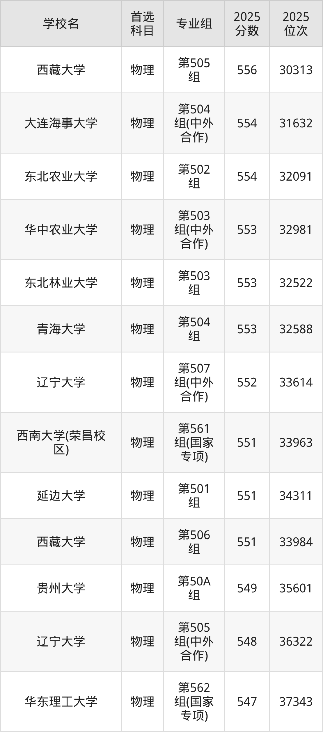 | 重庆 | 物理类 | 525 | 西藏大学 |