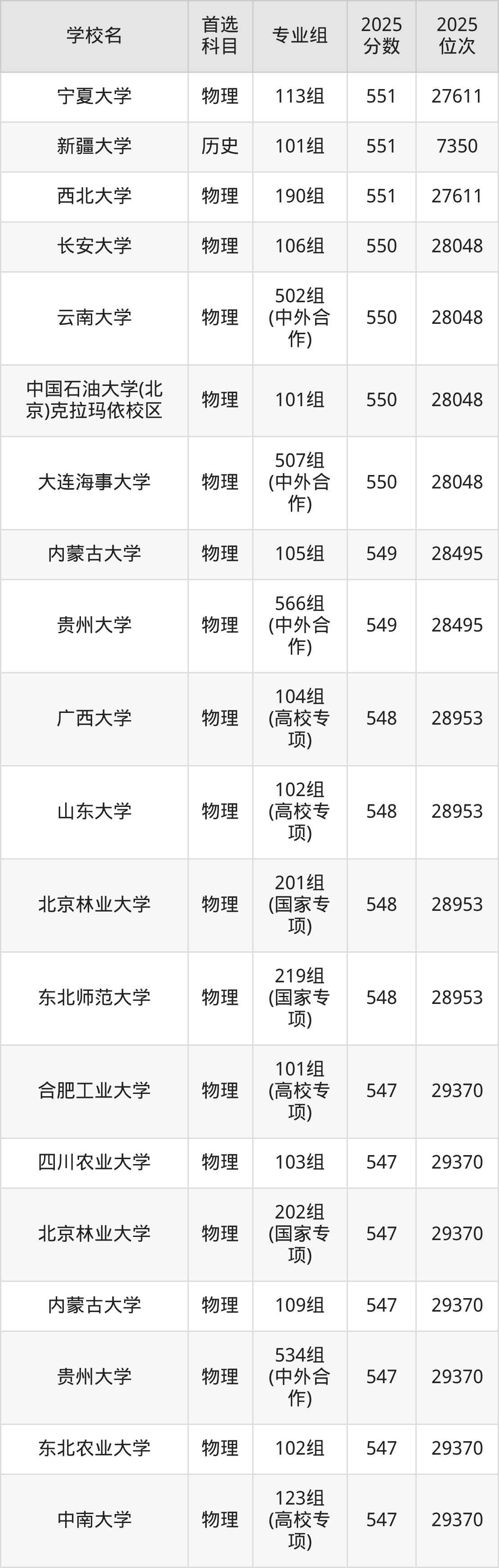 | 贵州 | 物理类 | 479 | 新疆大学 |