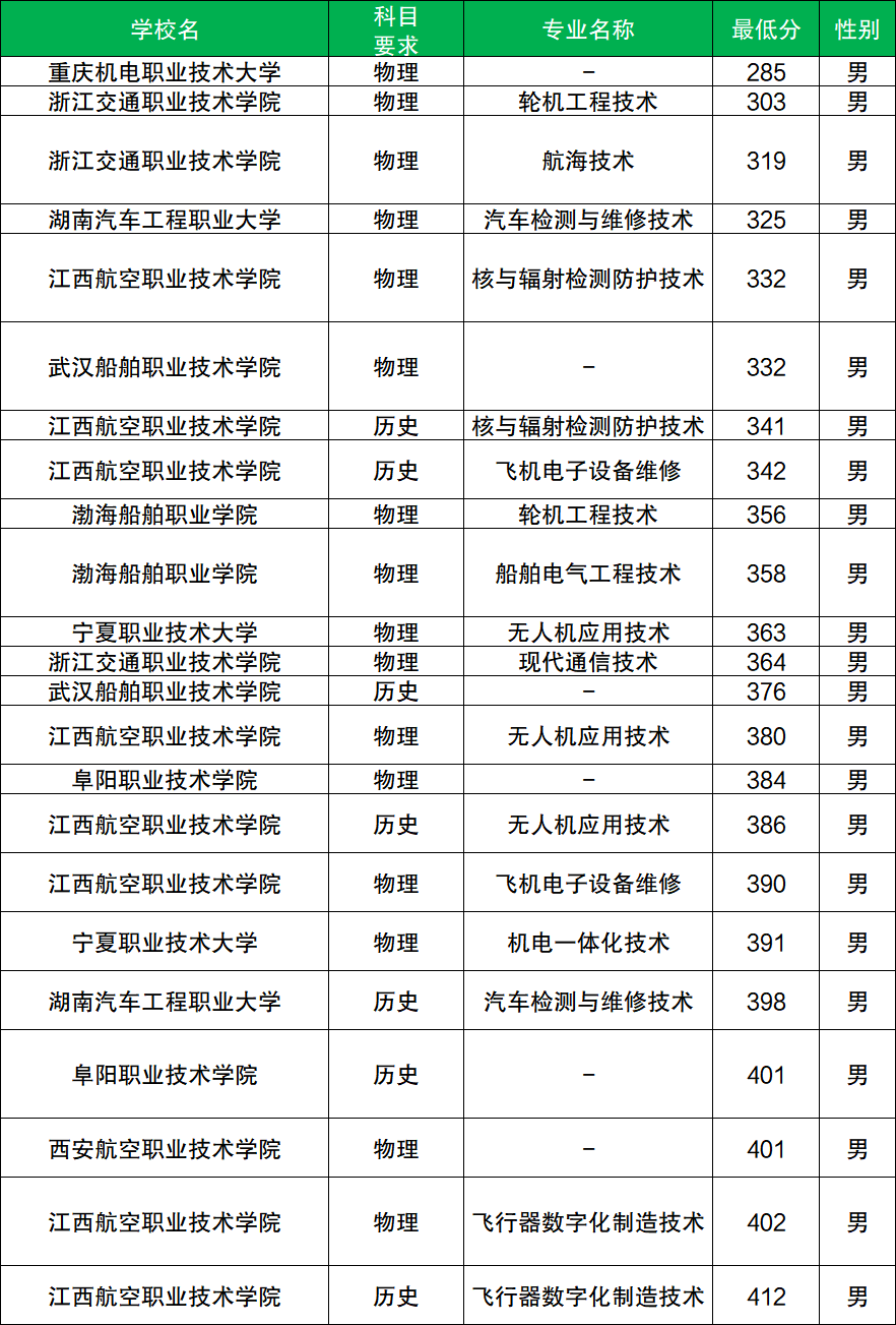 西安航空职业技术学院:物理类最低401分