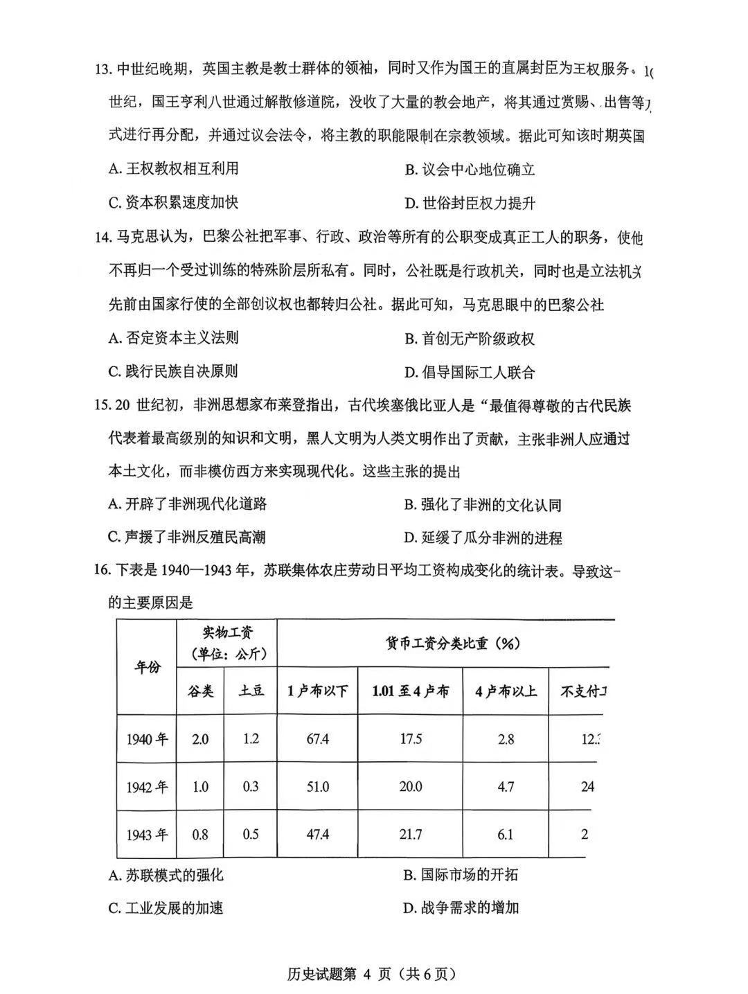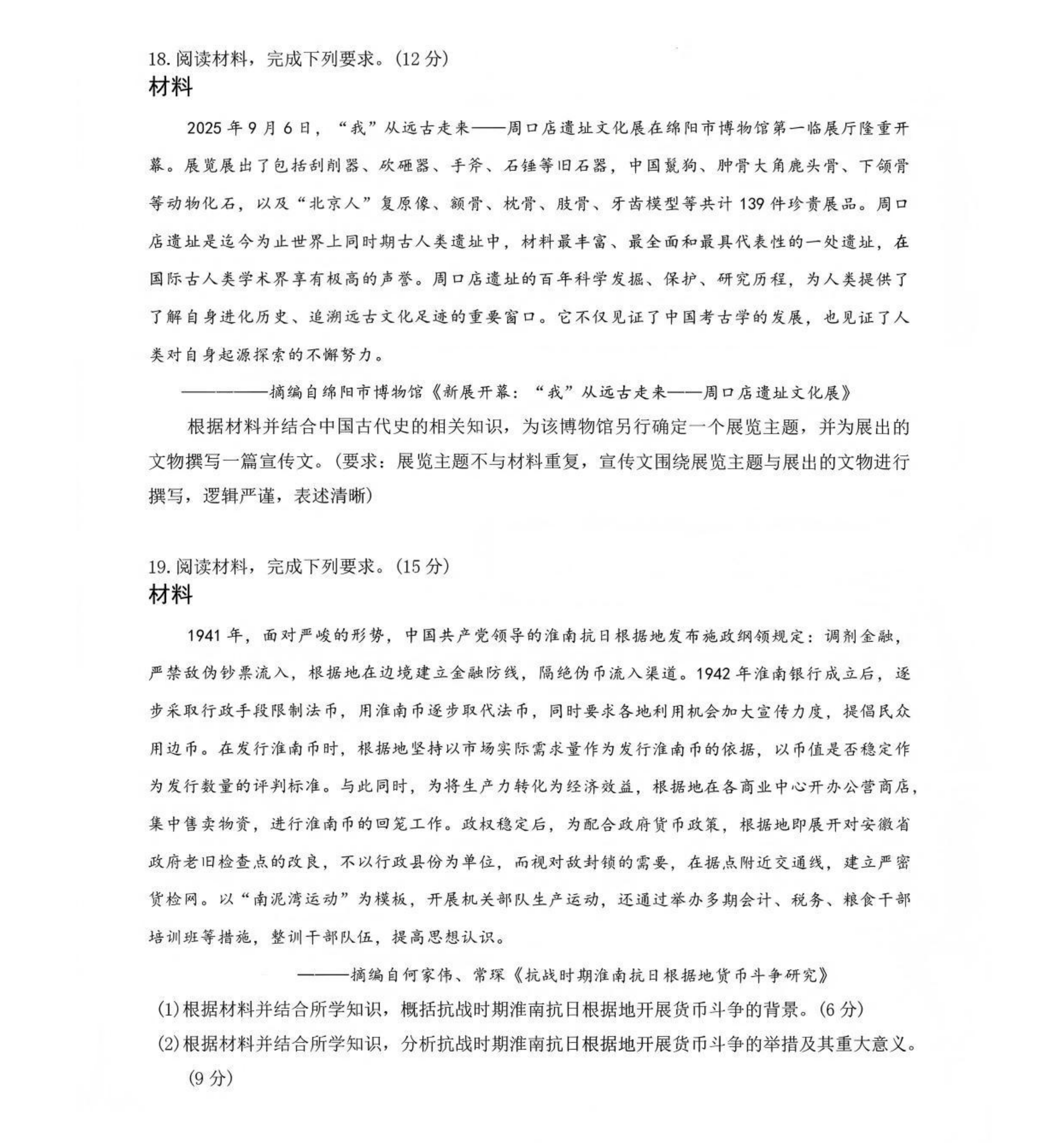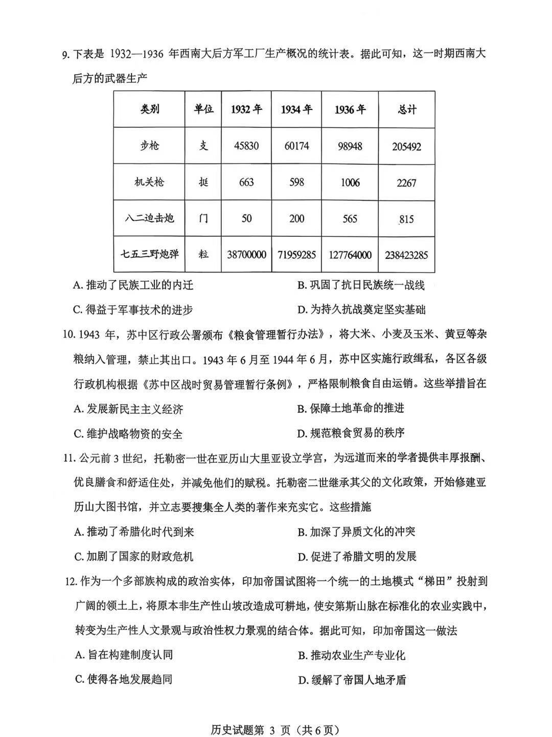 目前历史科目A、B两卷的试卷及答案已出炉,建议同学们考后结合答案及时归纳错题、分析薄弱环节,为后续复习明确方向。