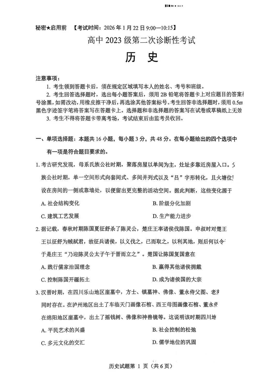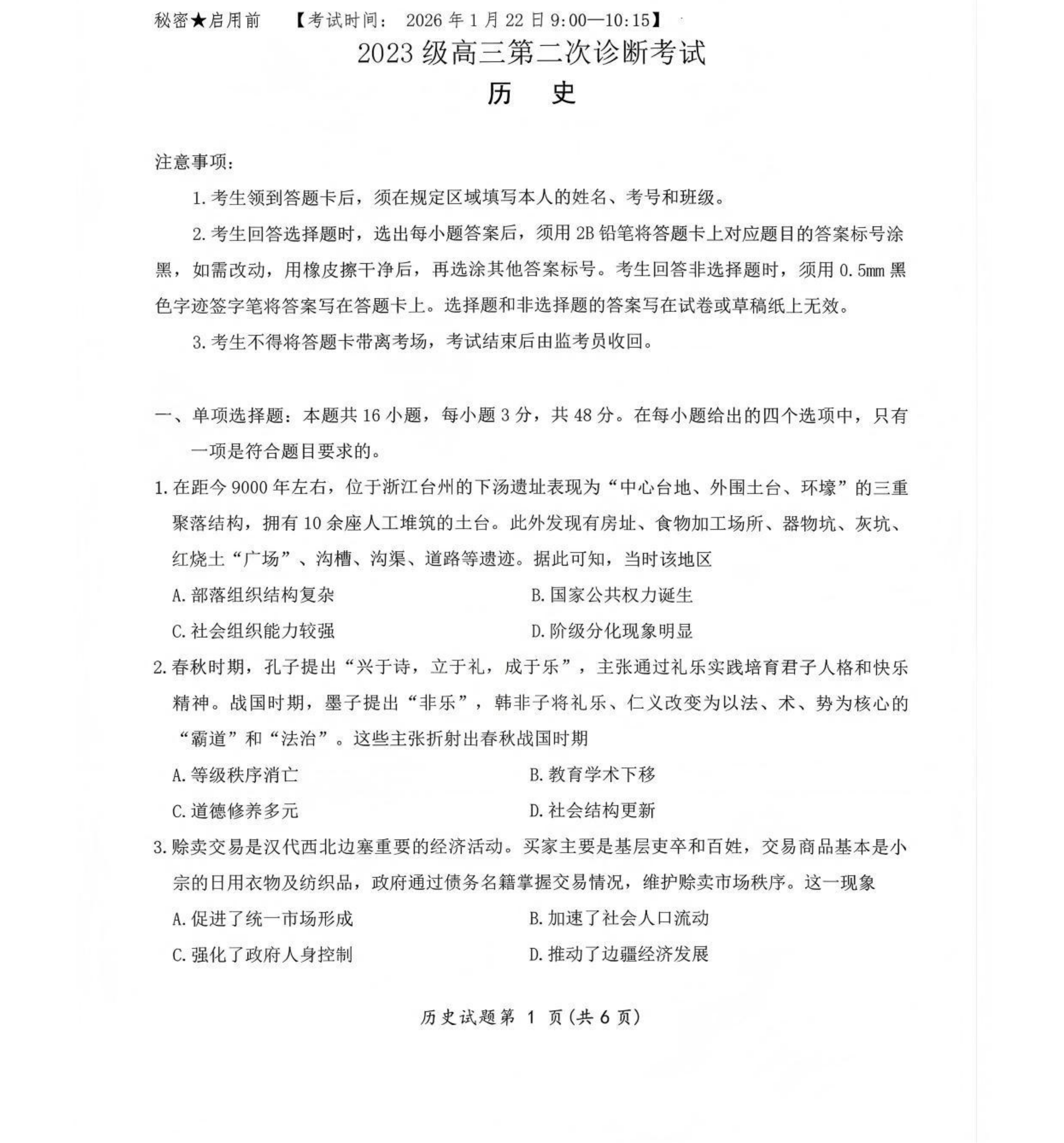 2026届高三绵阳二诊历史考试已于1月22日10:15结束。为帮助同学们及时核对答案、预估分数,本文在考试结束后第一时间收集整理了完整版历史试卷与详细答案解析(含A卷与B卷),并在文末附上高考历史实用提分小技巧。