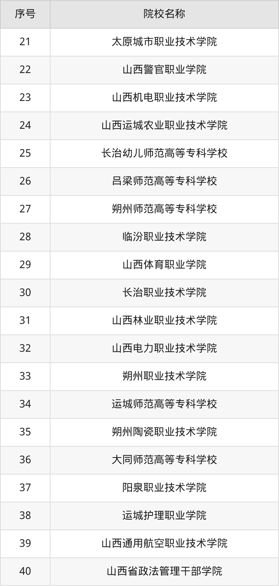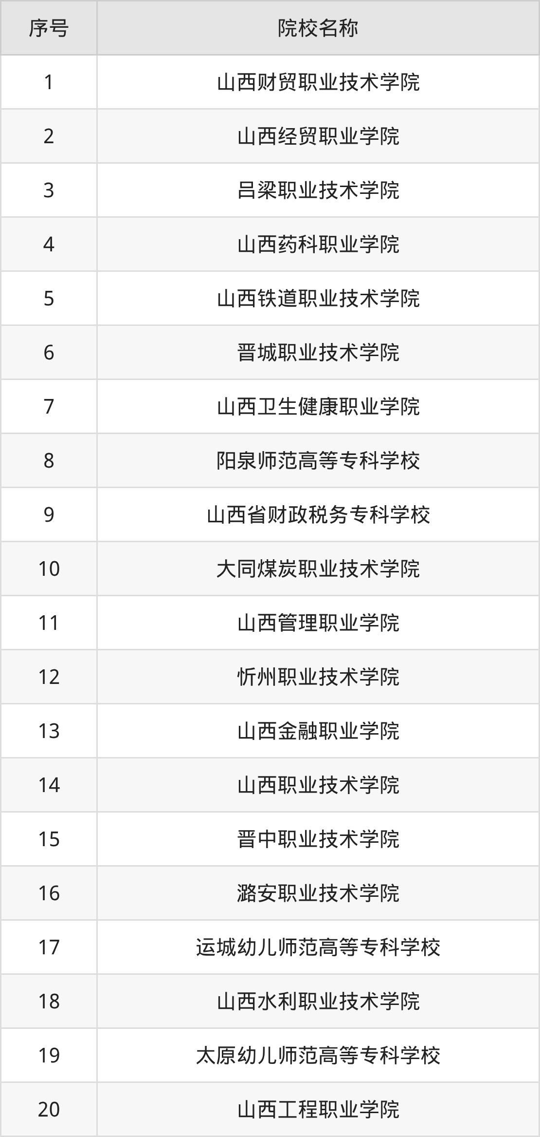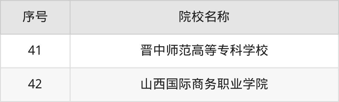 山西省公办大专招生学校一共有42所,具体名单如下。
