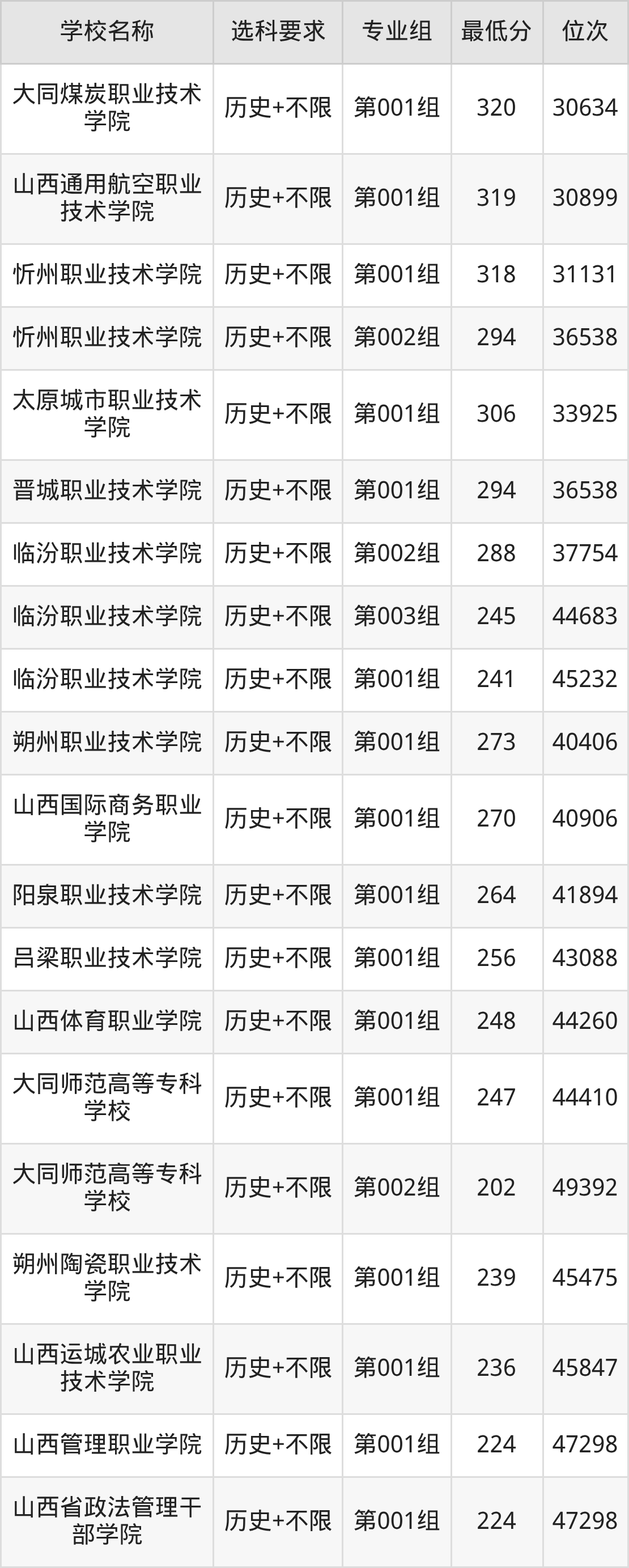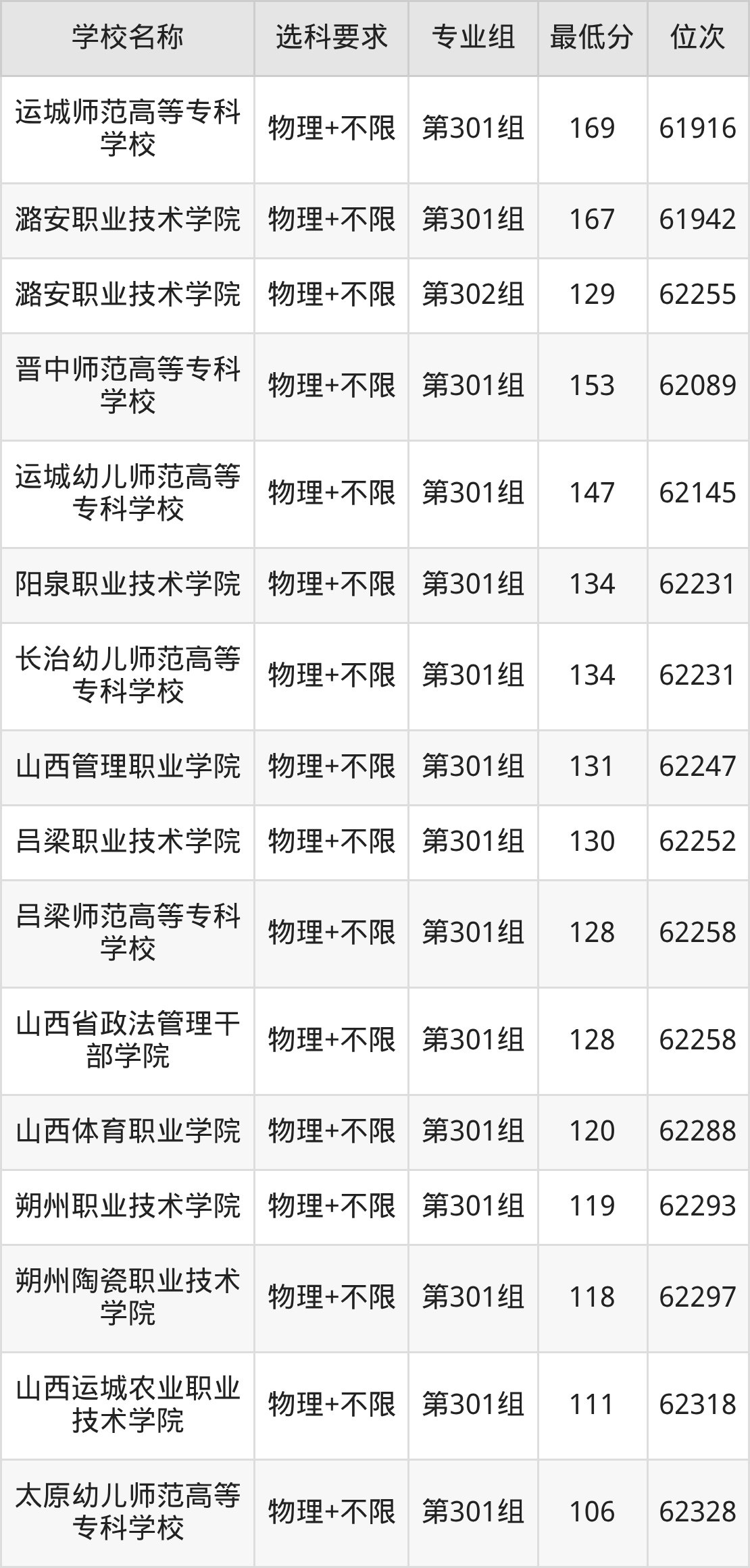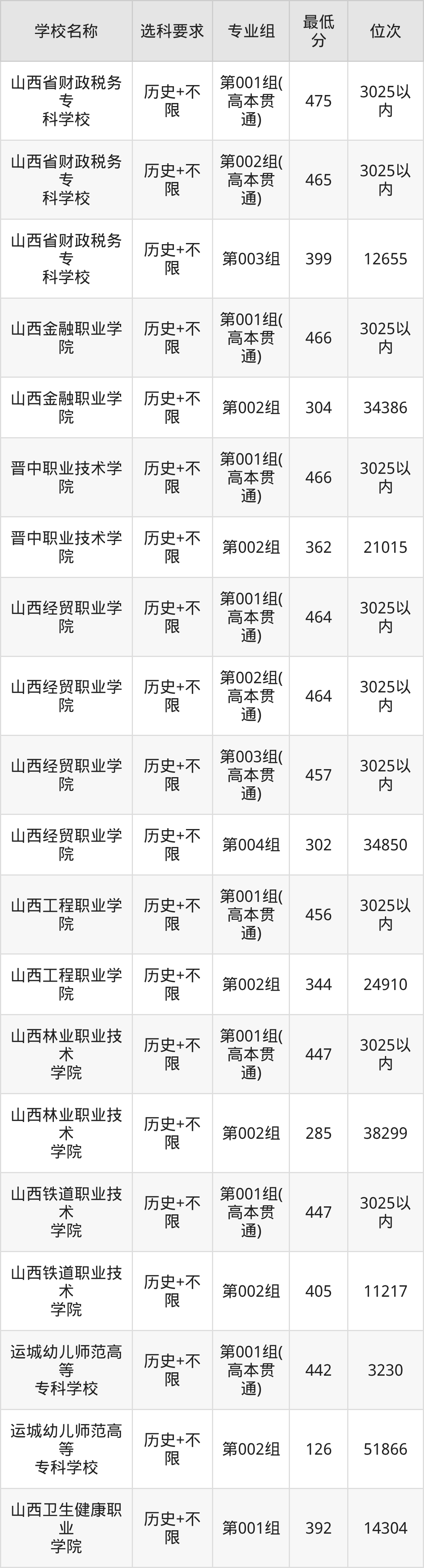2025年山西公办大专录取分数线:物理类最低104分、历史类最低101分,各学校录取分数线不同,如:山西省财政税务专科学校历史类399分、物理类352分,山西金融职业学院历史类304分、物理类137分,晋中职业技术学院历史类362分、物理类338分等,完整名单及分数线详情如下。