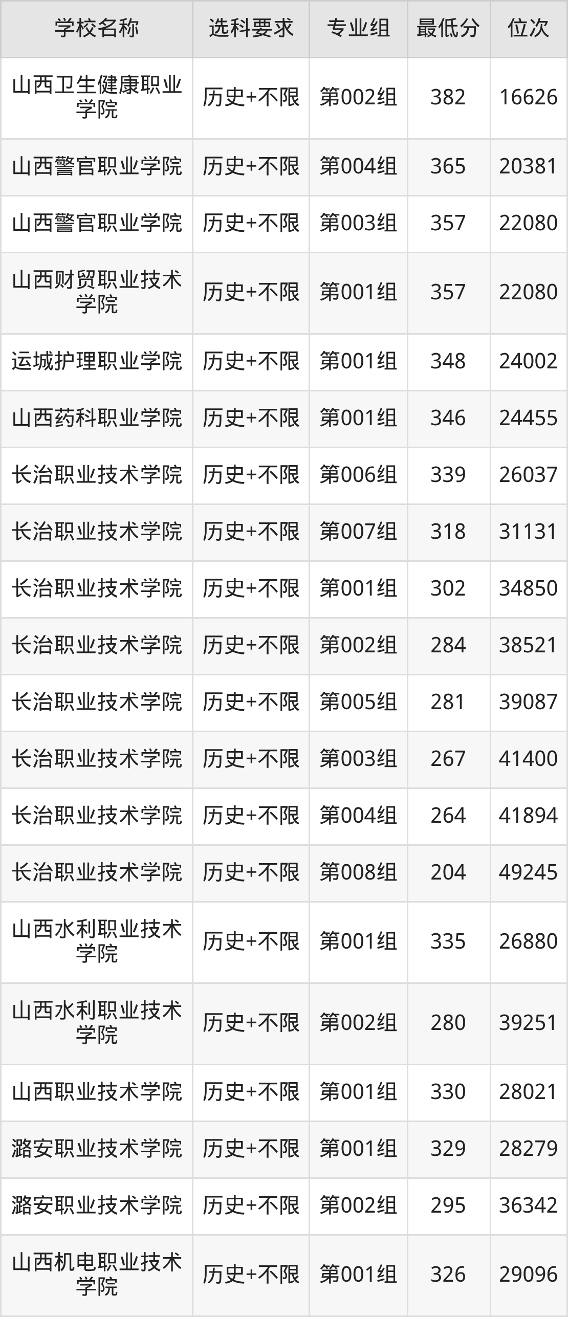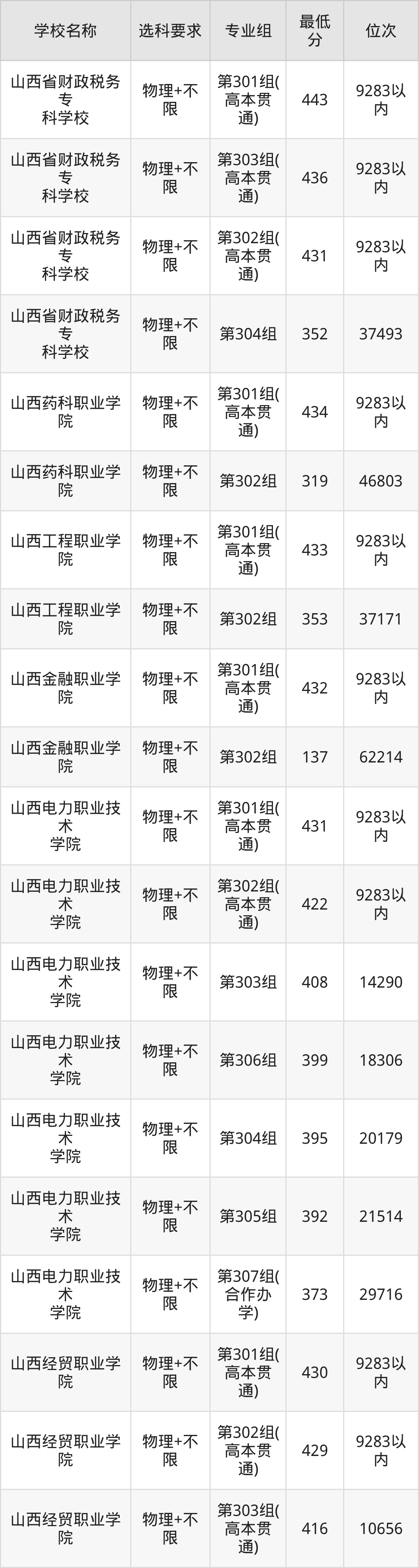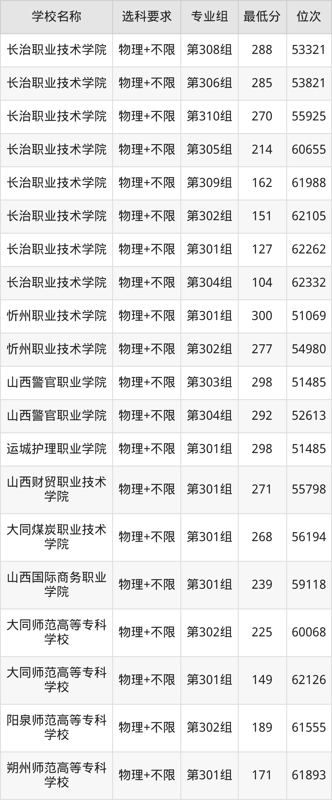 2025年山西公办大专录取分数线:物理类最低104分、历史类最低101分,各学校录取分数线不同,如:山西省财政税务专科学校历史类399分、物理类352分,山西金融职业学院历史类304分、物理类137分,晋中职业技术学院历史类362分、物理类338分等,完整名单及分数线详情如下。