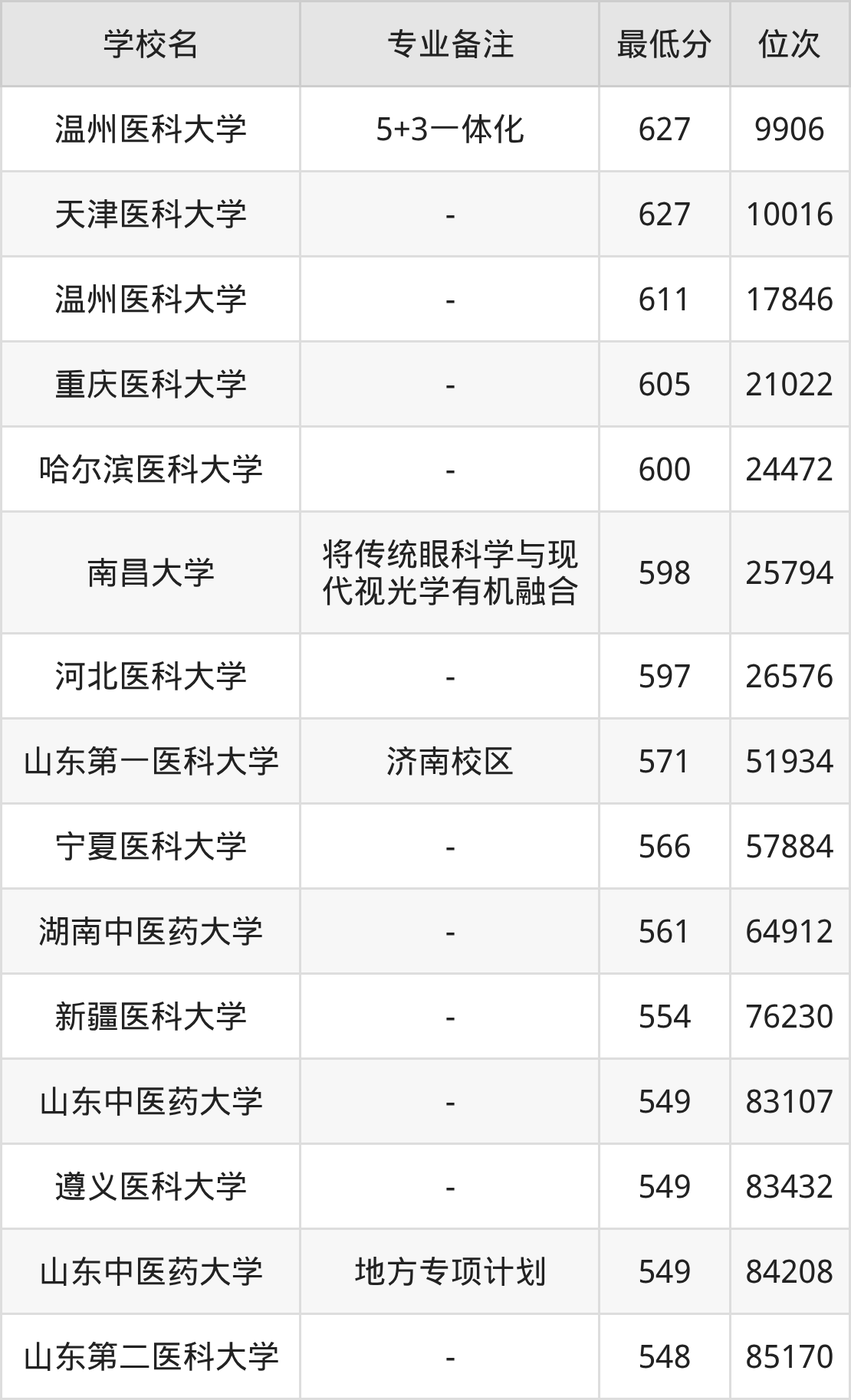 本文就根据公布了本科大学各专业录取分数线的山东为例,整理出2025年全国眼视光医学各校录取分数线。