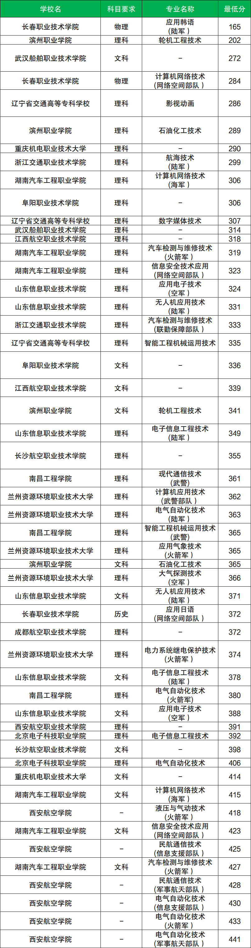 而报考定向士官提前批专业的流程主要包括政审、体检、面试等,其中体检标准要求参考《军队选拔军官和文职人员体检标准》,如任意一眼裸眼视力小于4.5就是不合格。更多报考信息以及分数线可在下文中查阅。