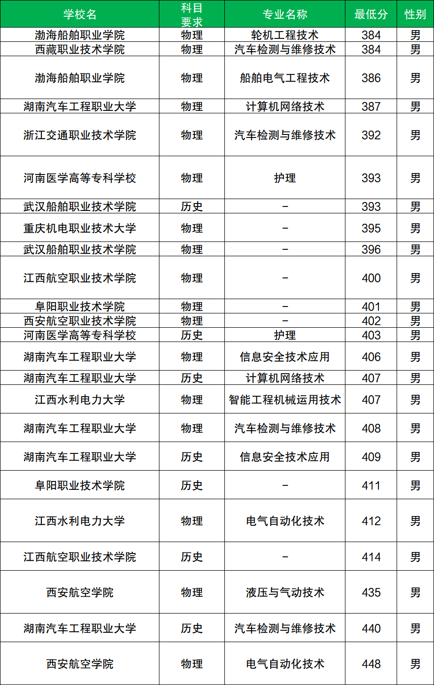 江西航空职业技术学院:物理类最低400分、历史类最低414分