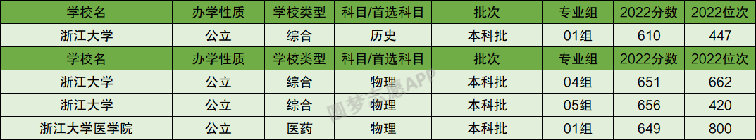 根据江苏省教育考试院公布的2022年高考招录数据,圆梦志愿为大家整理出了浙江大学2022年在江苏省物理类、历史类的投档分数线、以及浙江大学2022年在江苏省的最低位次。下图为具体数据展示: