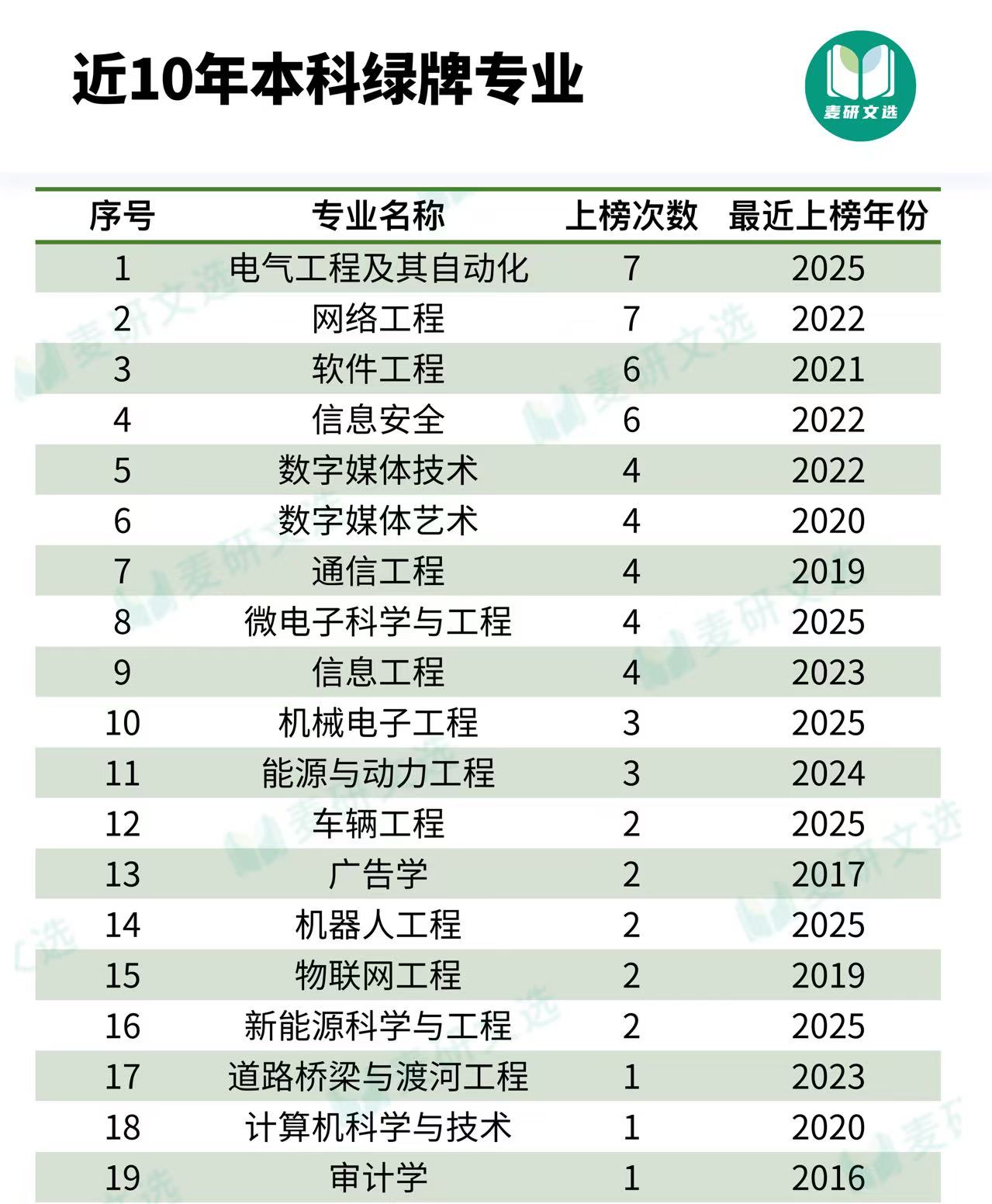 根据麦可思近十年(2015-2024届)大学生就业报告,2026年适合女生读的理工类专业名单如下图所示。小编将详细介绍信息工程、电气工程及其自动化、信息安全三个专业。
