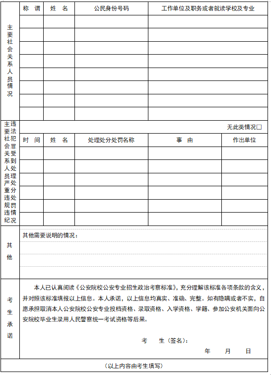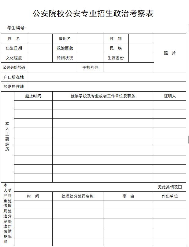 福建的考生可在“福建警察学院招生网”的“政审表格下载”栏目找到最新的表格。