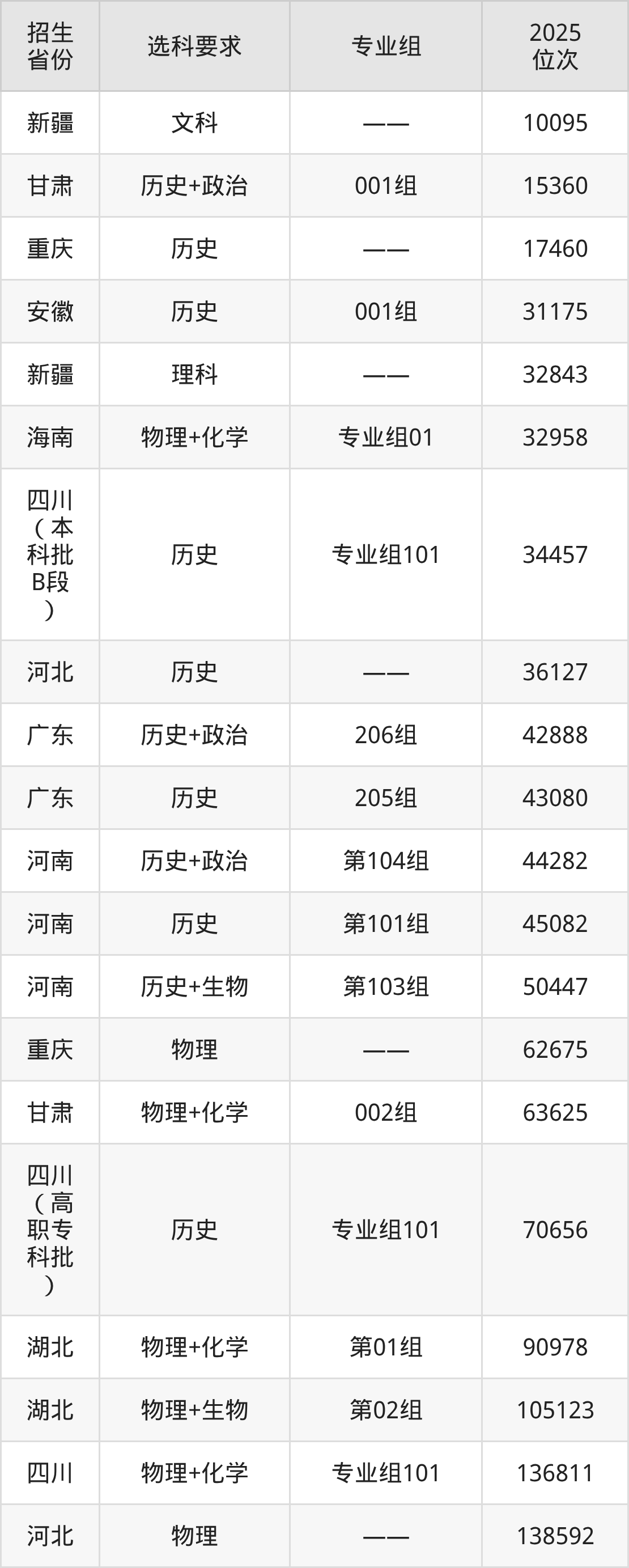 信阳农林学院2025年在全国各省的位次差异较大,最高位次是10095位(新疆文科)、最低位次是369066位(山东)。各省具体位次请看下图: