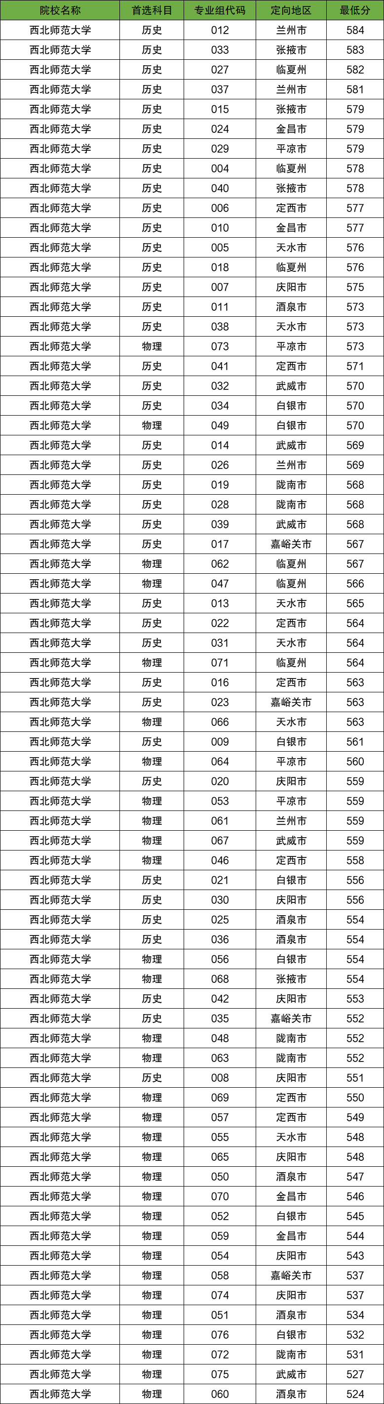 1、西北师范大学:2025年招收公费师范生334人,物理类最低524分、历史类最低551分。