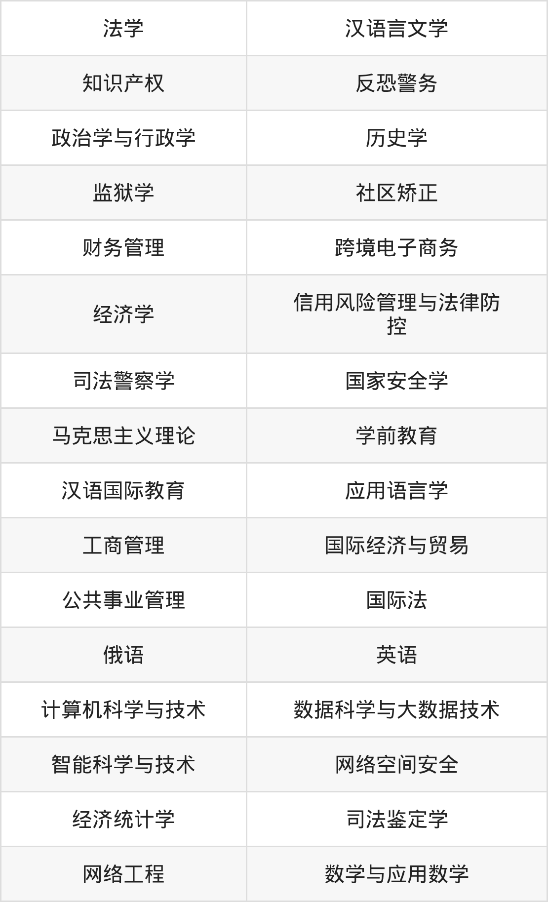 根据2025年新疆高考招生计划可知,新疆政法学院招生专业包含法学、汉语言文学、知识产权等,完整版名单如下。