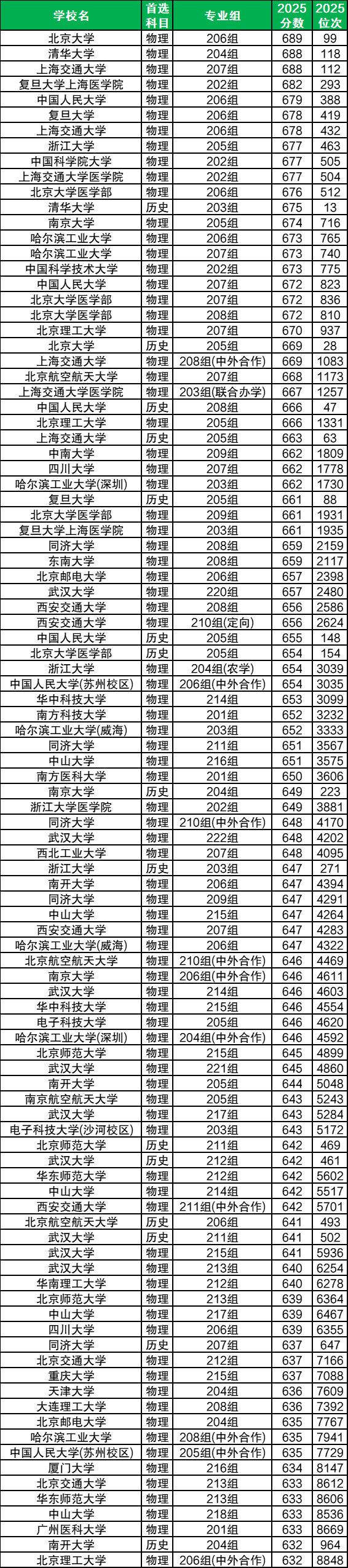 篇幅有限,下面附上全国大学2025年在广东录取分数线Top100一览表: