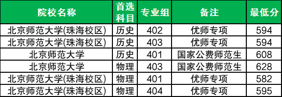 历史类最低分594分(珠海校区)、物理类最低分582分(珠海校区)