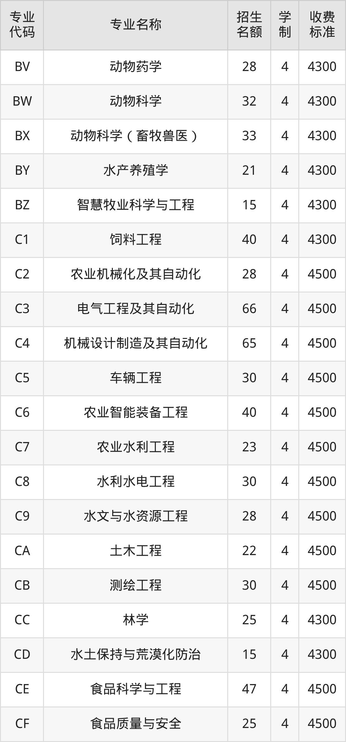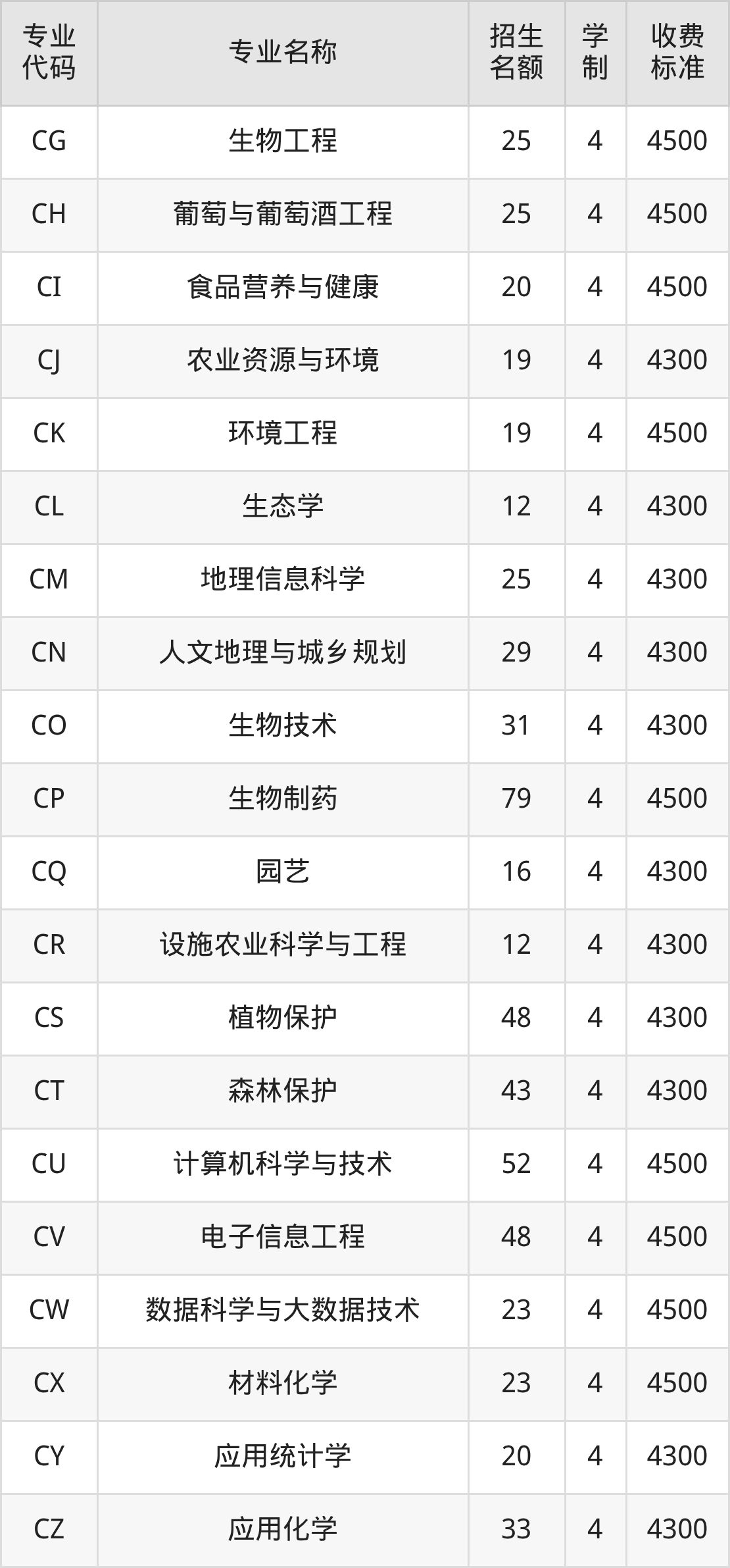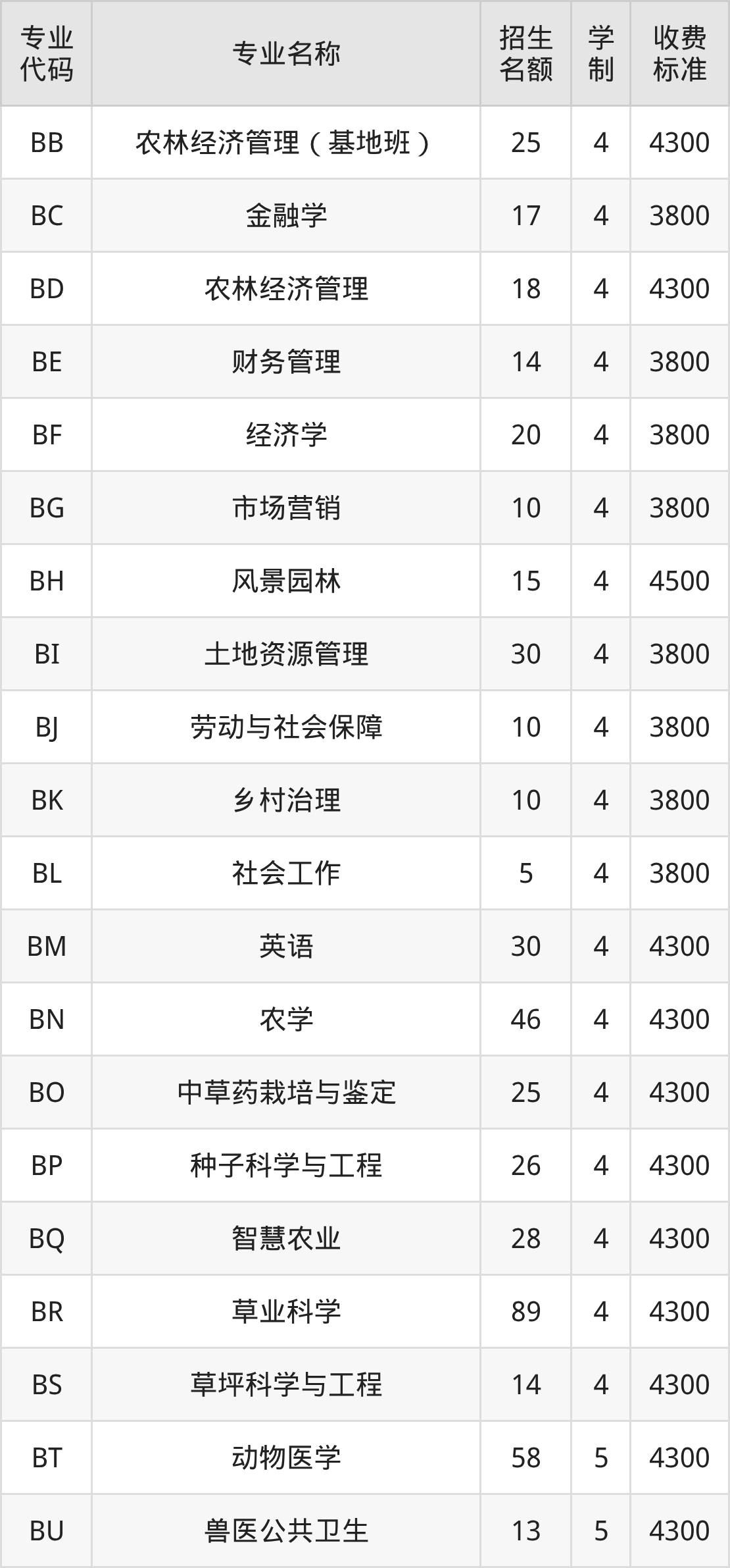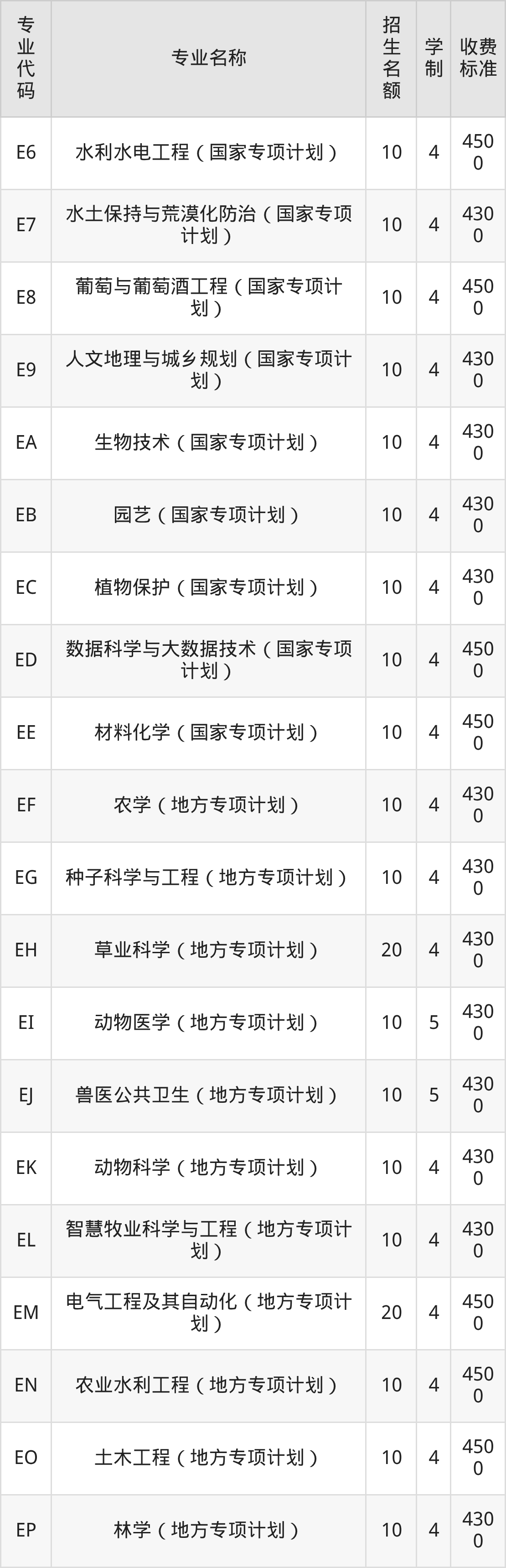 | A1 | 农林经济管理(基地班) | 10 | 4 | 4300 |