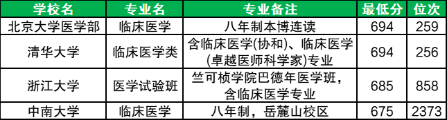 2025年临床医学八年制录取分数线范围在675分-694分之间,最低分院校是中南大学(岳麓山校区)、最高分院校是北京大学医学部、清华大学。结合批次线来看,2026届考生超特控线83分或位次在1000名以内报考,被录取的概率会更大一些。