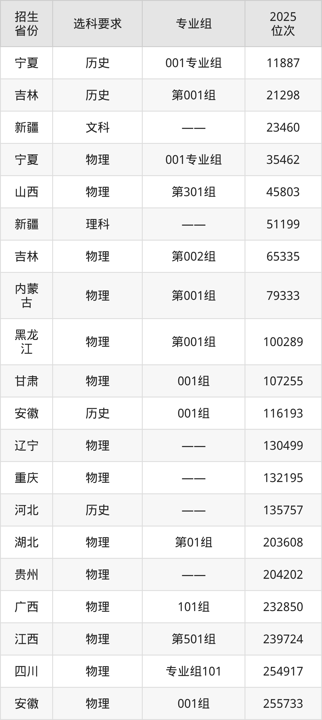 山东铝业职业学院2025年在全国各省的位次差异较大,最高位次是11887位(宁夏历史类)、最低位次是609268位(山东)。各省具体位次请看下图: