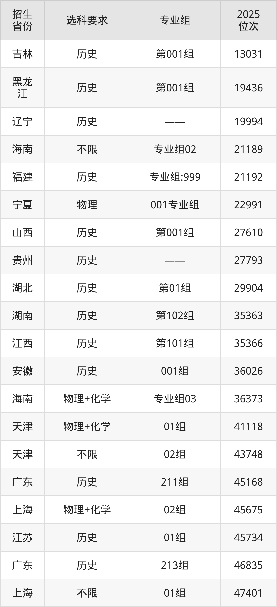 南昌航空大学科技学院2025年在全国各省的位次差异较大,最高位次是13031位(吉林历史类)、最低位次是280239位(山东)。各省具体位次请看下图: