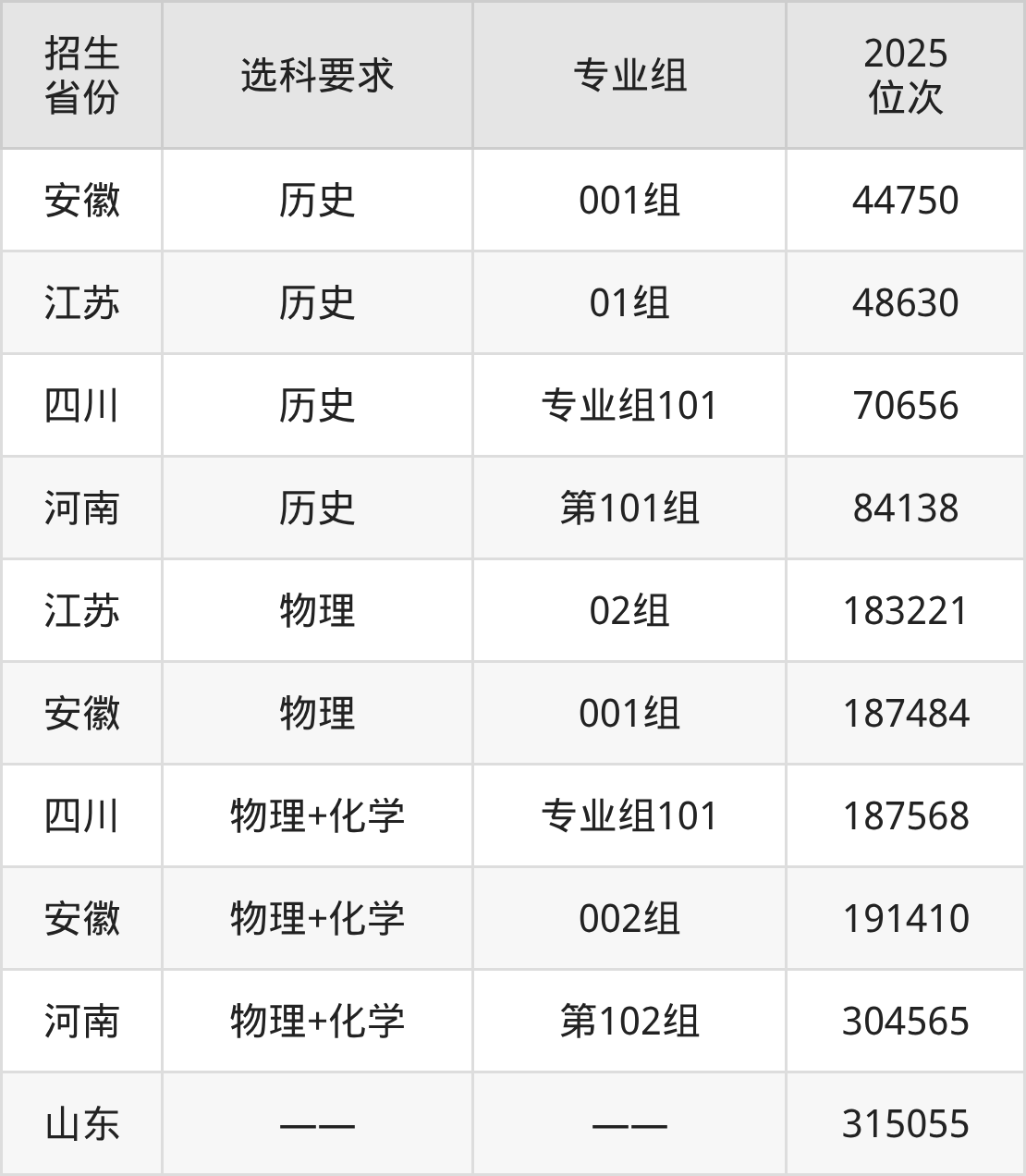 安徽文达信息工程学院2025年在全国各省的位次差异较大,最高位次是44750位(安徽历史类)、最低位次是315055位(山东)。各省具体位次请看下图: