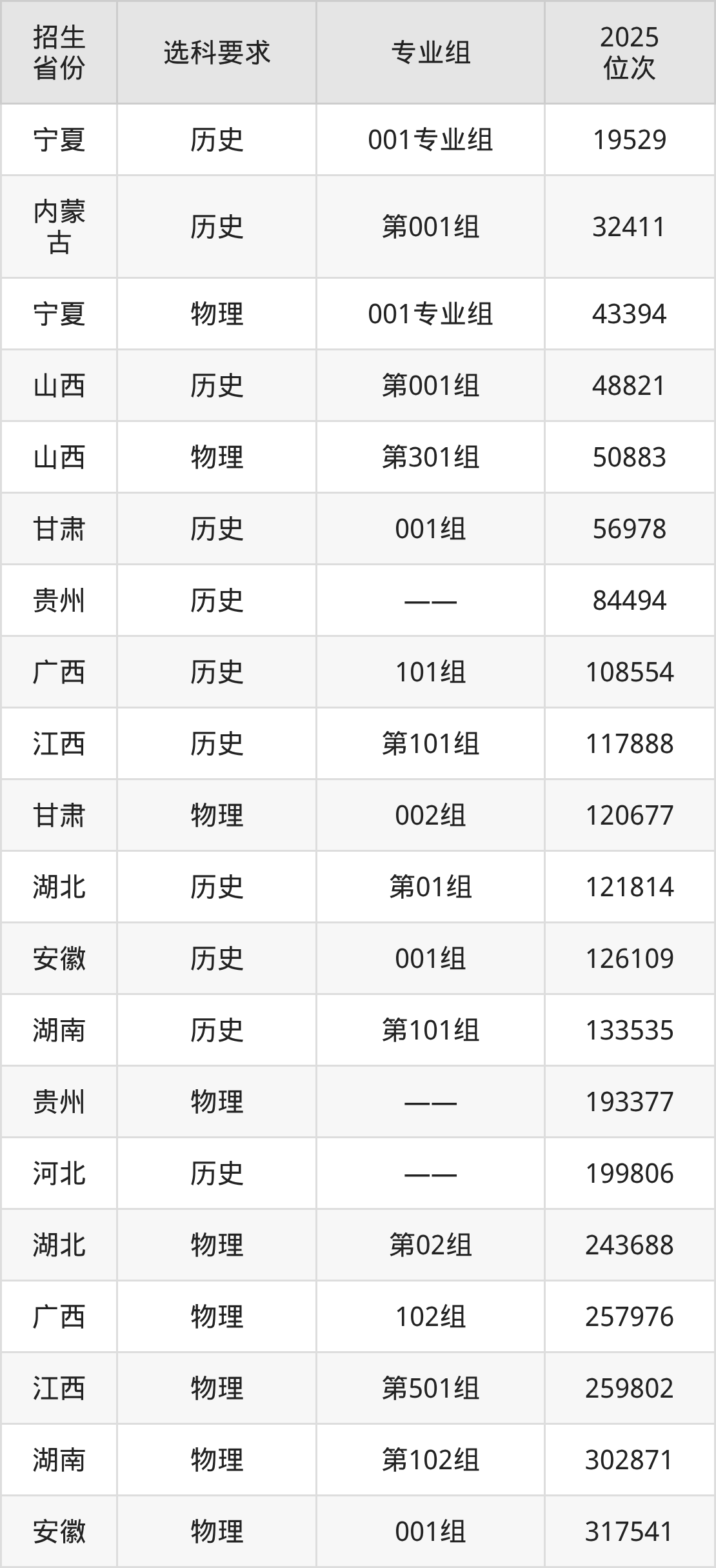 南阳职业学院2025年在全国各省的位次差异较大,最高位次是19529位(宁夏历史类)、最低位次是680380位(山东)。各省具体位次请看下图: