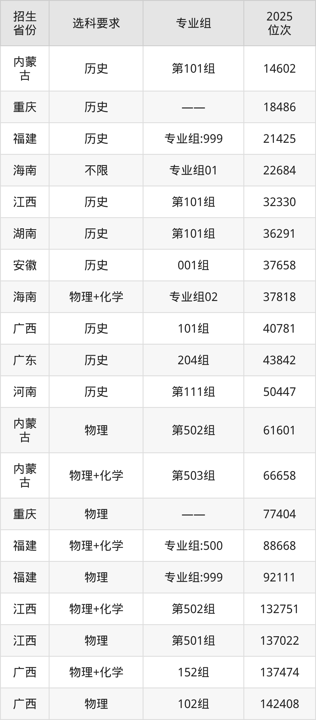 南宁师范大学师园学院2025年在全国各省的位次差异较大,最高位次是14602位(内蒙古历史类)、最低位次是238824位(河南物理类)。各省具体位次请看下图: