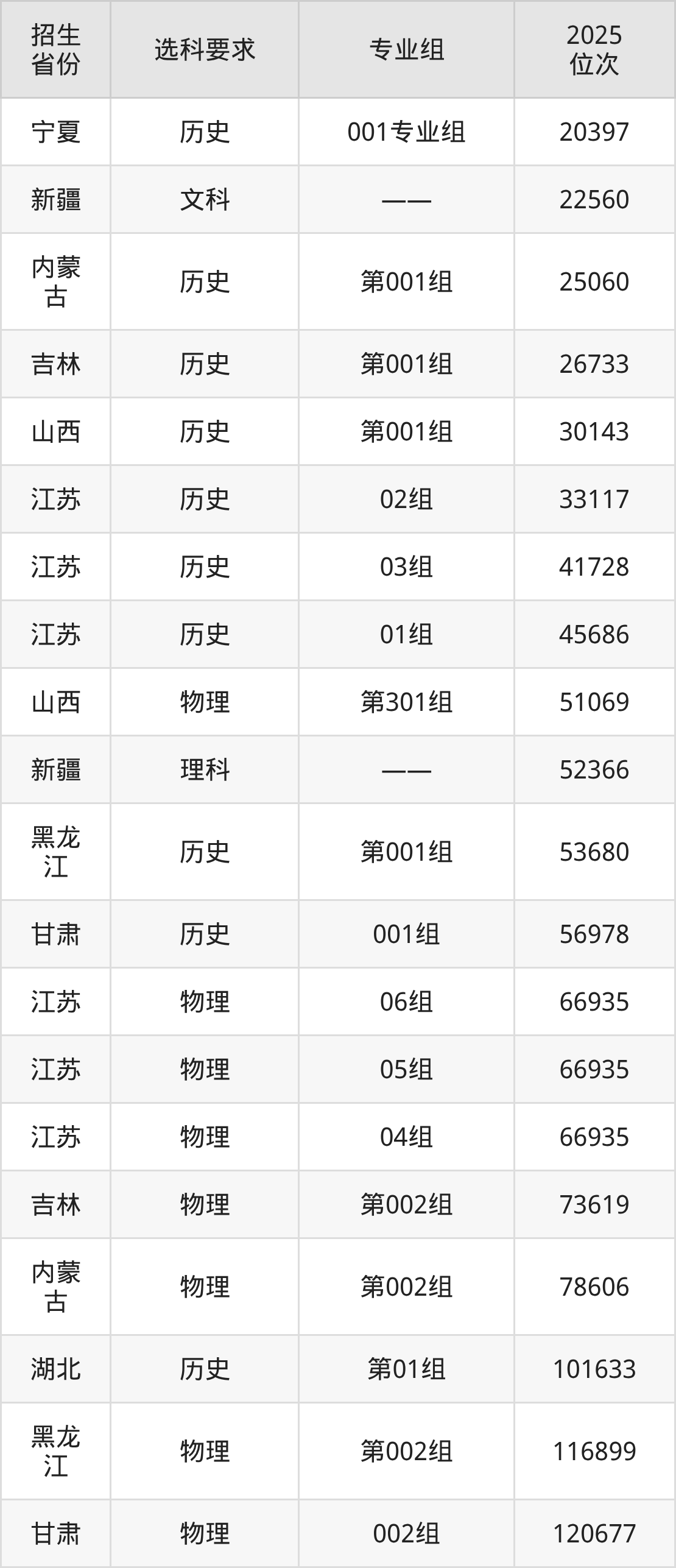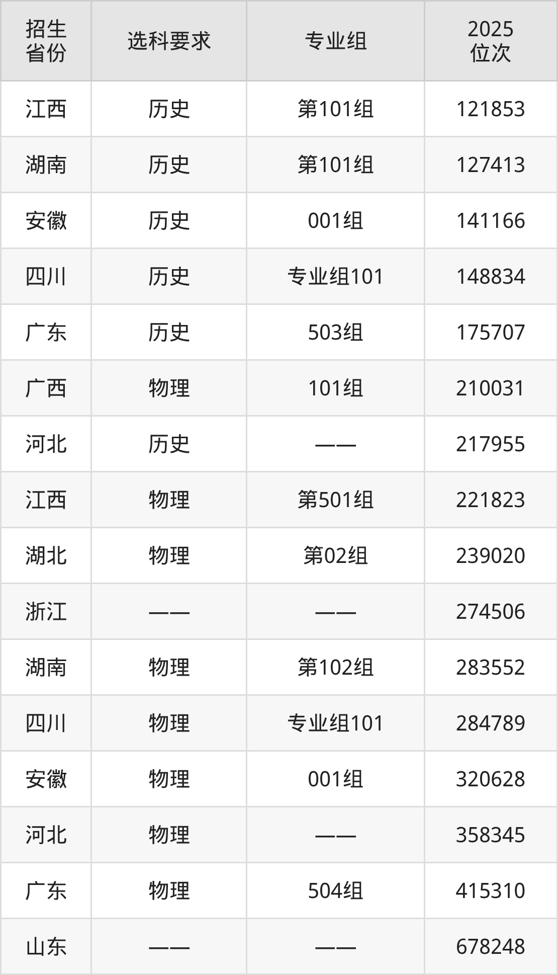 九州职业技术学院2025年在全国各省的位次差异较大,最高位次是20397位(宁夏历史类)、最低位次是678248位(山东)。各省具体位次请看下图: