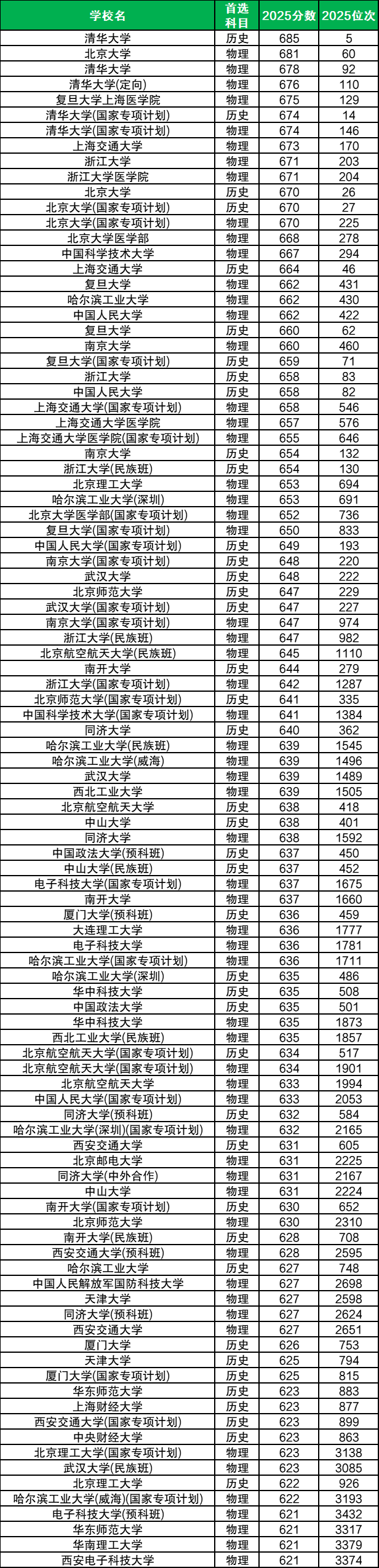 特控线以上(517分+):可报考清华大学(685分)、北京大学(670分)、复旦大学(660分)等顶尖高校。