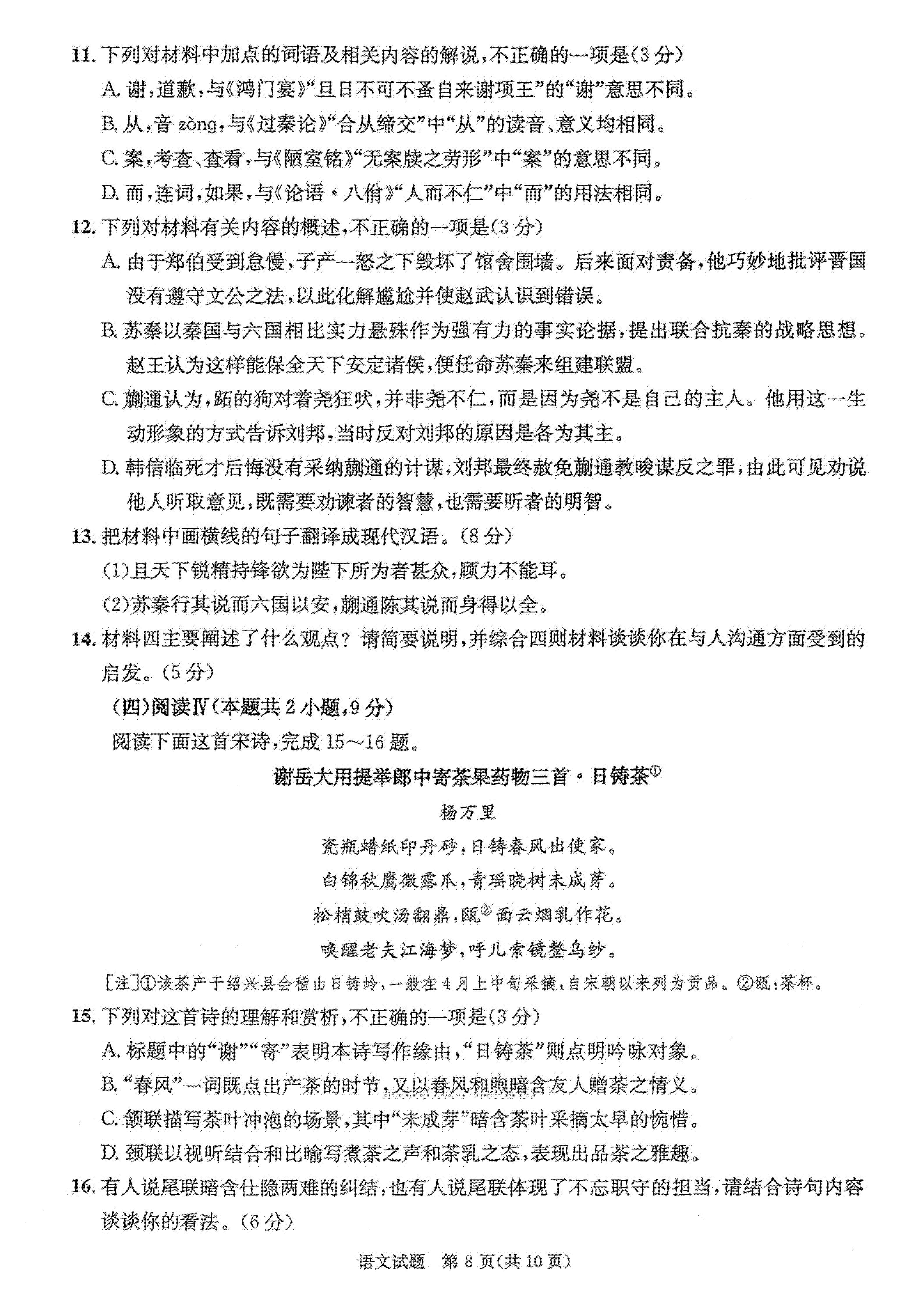 目前语文试卷及答案均已出炉,同学们可自行核对。