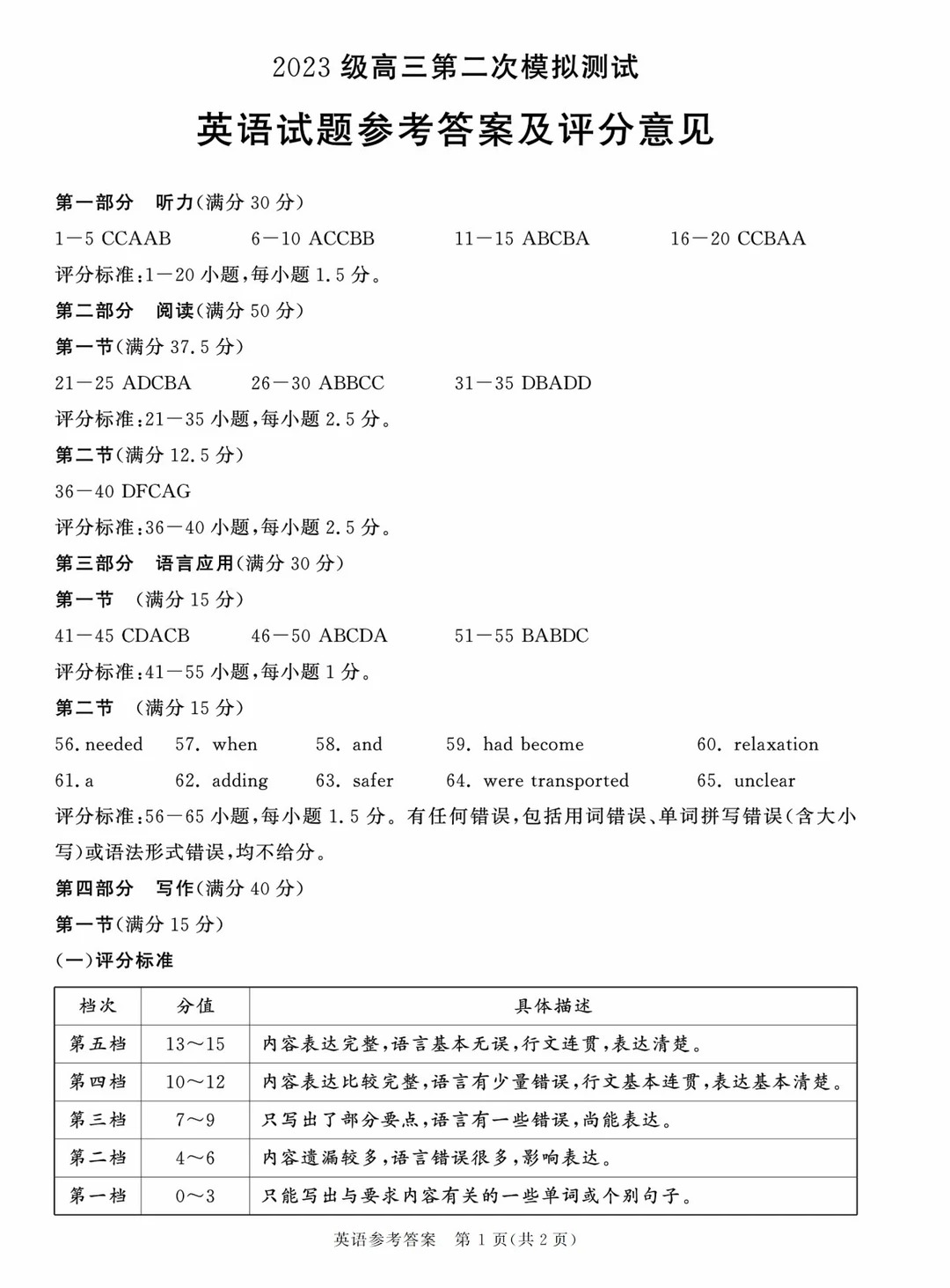 目前英语试卷及答案均已公布,同学们可自行核对。