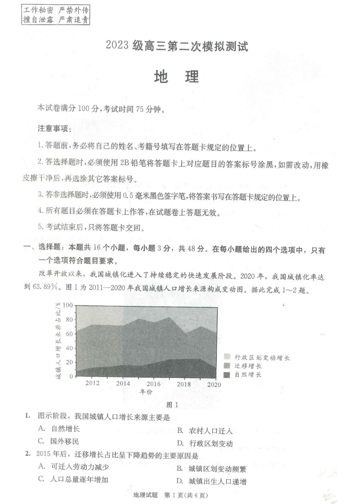 目前地理试卷及答案均已公布,同学们可自行核对。