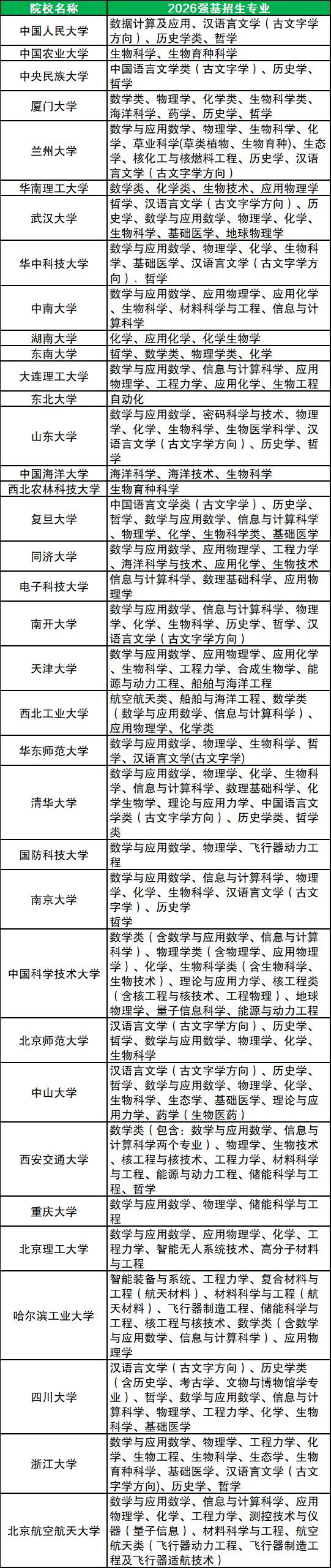 其余院校2026强基计划招生专业可见下表(表格正在持续更新中):