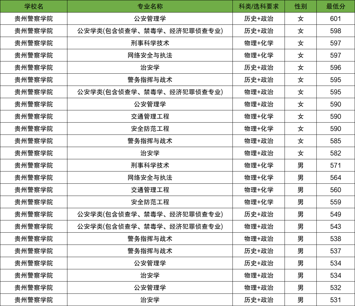 贵州警察学院,2025年男生投档最低532分;