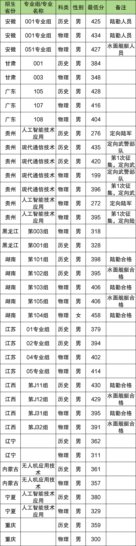武昌职业学院定向士官各省分数线汇总如下: