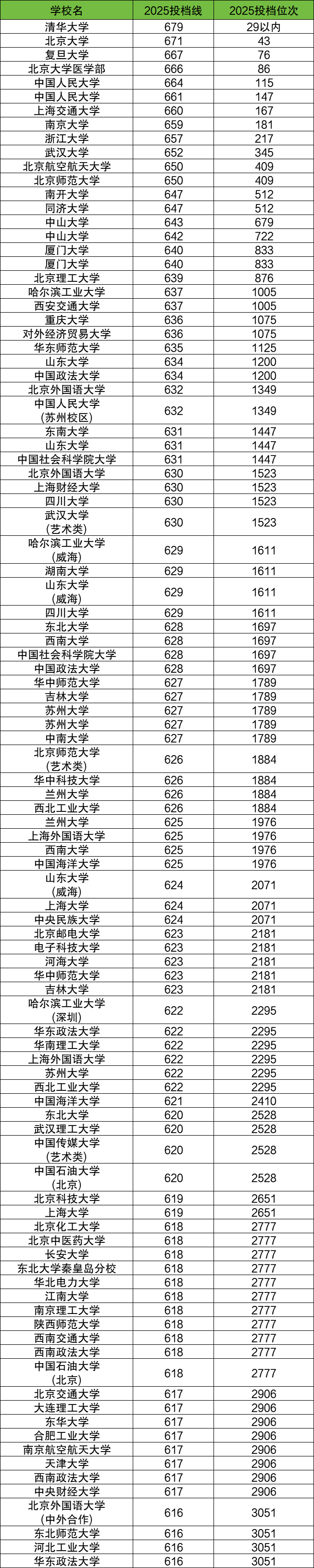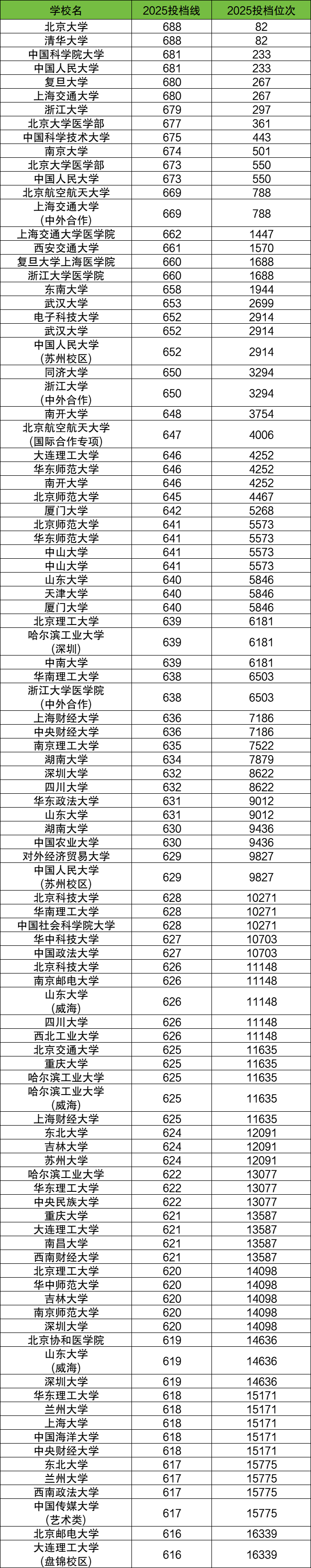 下面是2025年各大学在河北物理类录取分数线排名前100强名单:
