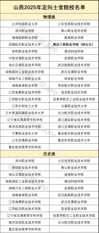 最新一年招生计划显示,定向士官在山西省招生院校中,物理类招生院校37所、历史类招生院校21所,不同院校招生人数、专业、类型等都有差异,为方便2026届考生报考,下面将详细列举这些学校的名单,供查阅: