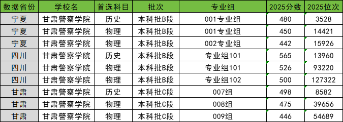 2025年甘肃警察学院的录取分数线已公布,下面是2025年甘肃警察学院已公布录取分数线的省份,可供参考。