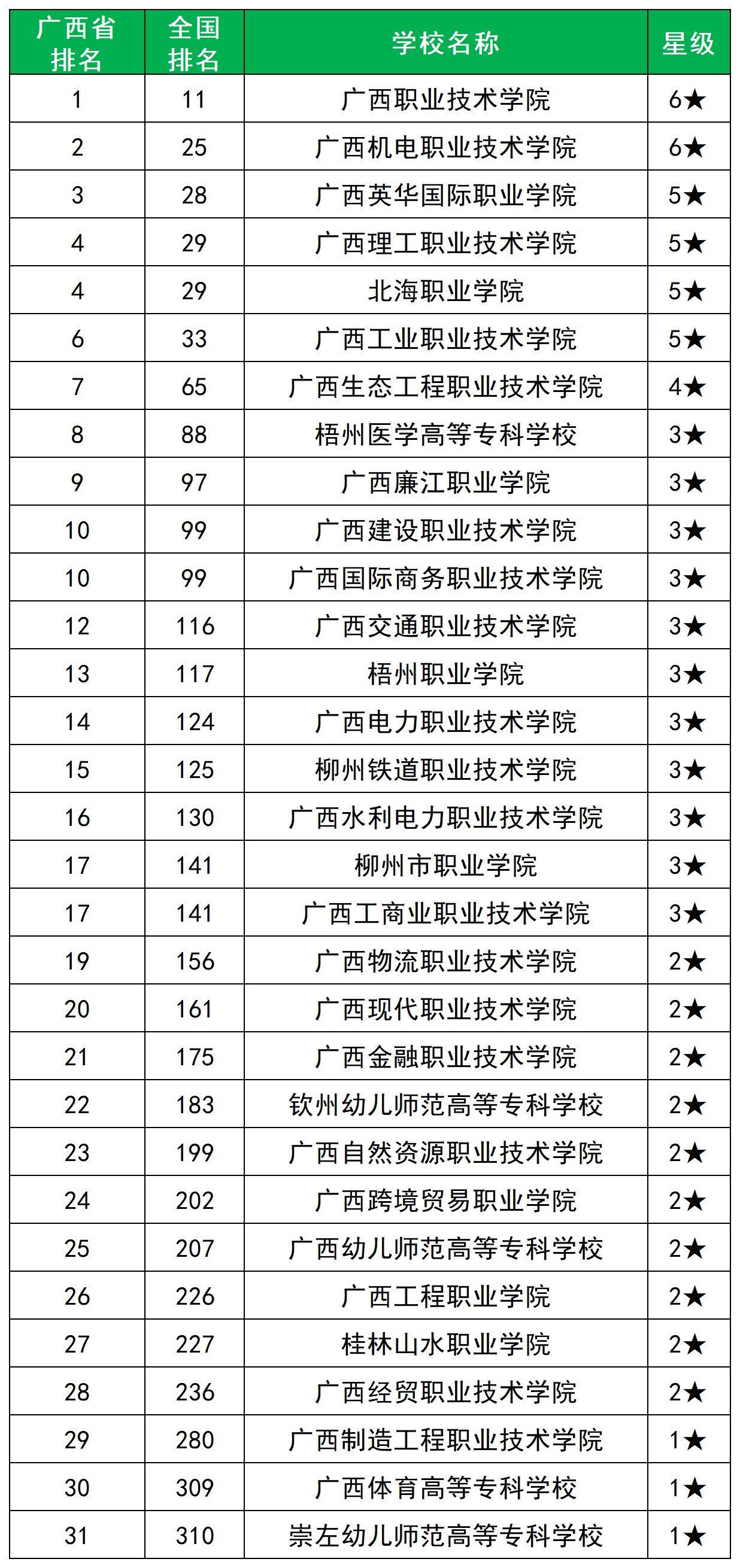 | 23 | 500 | 广西职业师范学院 | 1★ |