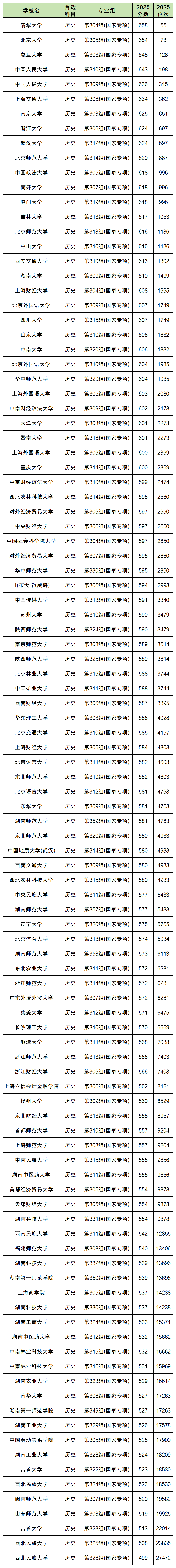 以下是2025年各大学国家专项计划在湖南历史类的录取分数线一览表(需滑动查阅):