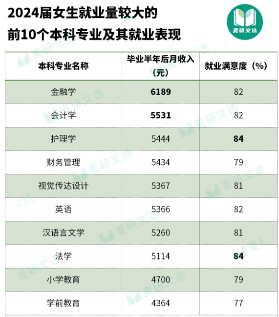 最新数据显示:女生就业量最大、最吃香的10大本科专业为:金融学、会计学、护理学、财务管理、视觉传达设计、英语、汉语言文学、法学、小学教育、学前教育。这些专业就业稳定、满意度高,适配女生职业发展需求。