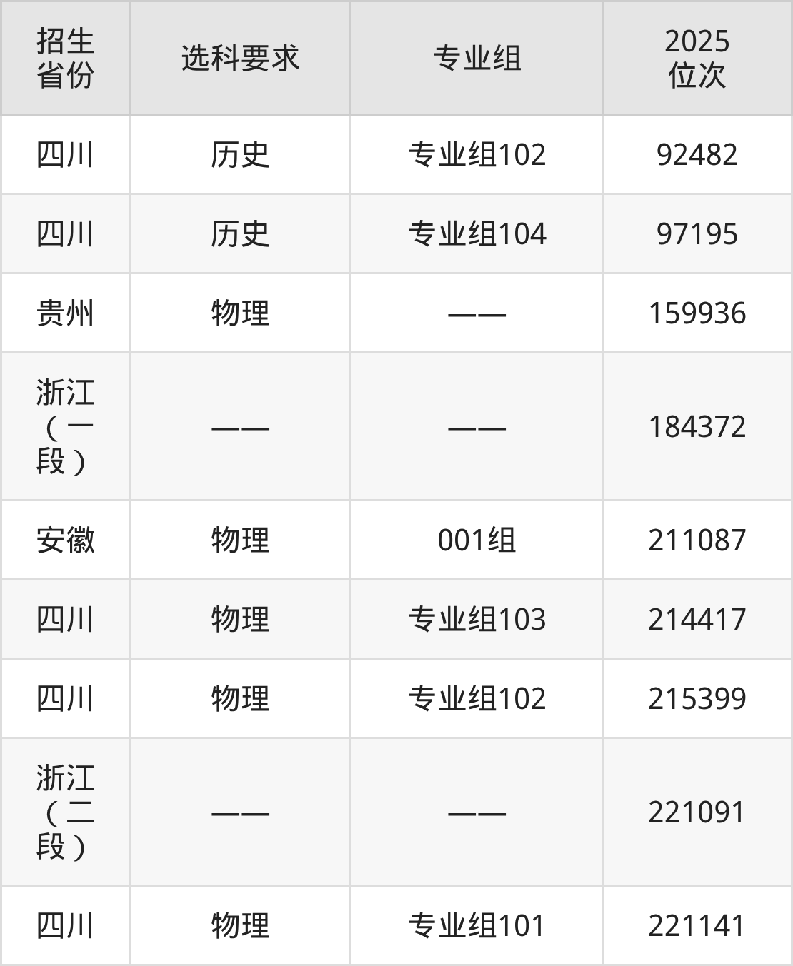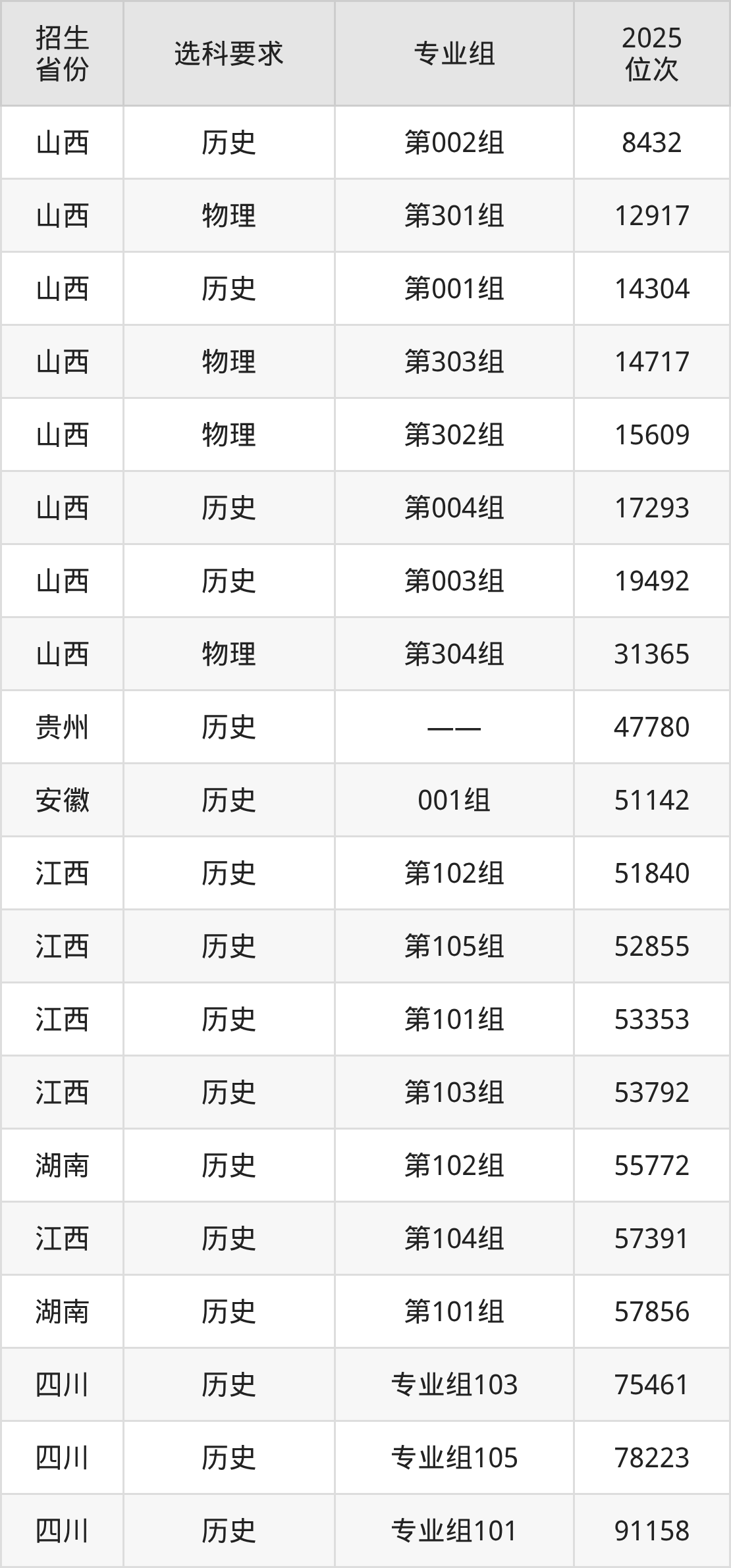 宁波城市职业技术学院2025年在全国各省的位次差异较大,最高位次是8432位(山西历史类)、最低位次是221141位(四川物理类)。各省具体位次请看下图: