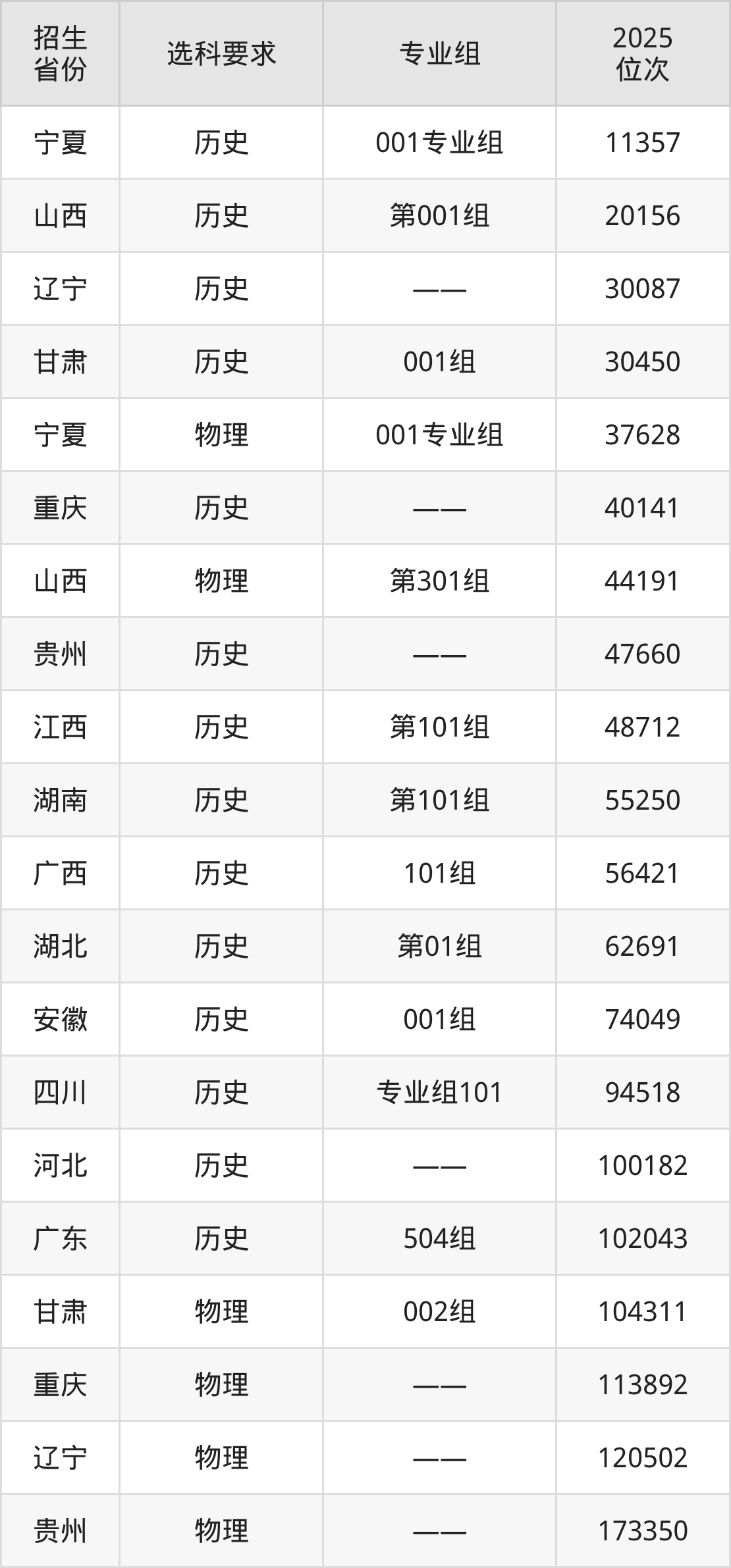 厦门城市职业学院2025年在全国各省的位次差异较大,最高位次是11357位(宁夏历史类)、最低位次是373492位(山东)。各省具体位次请看下图: