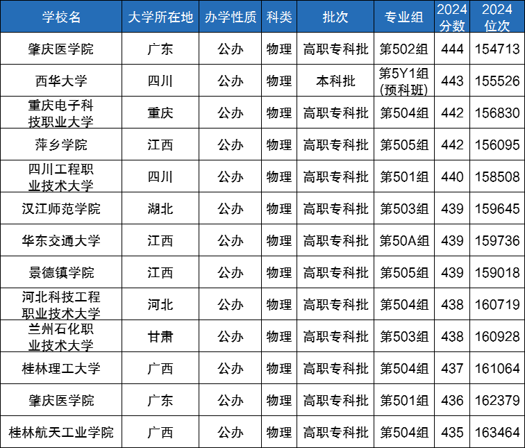 2024年甘肃省的440分左右(435-445分)能上的本科大学一共有145所,为本科批C段和高职专科批次录取的院校。